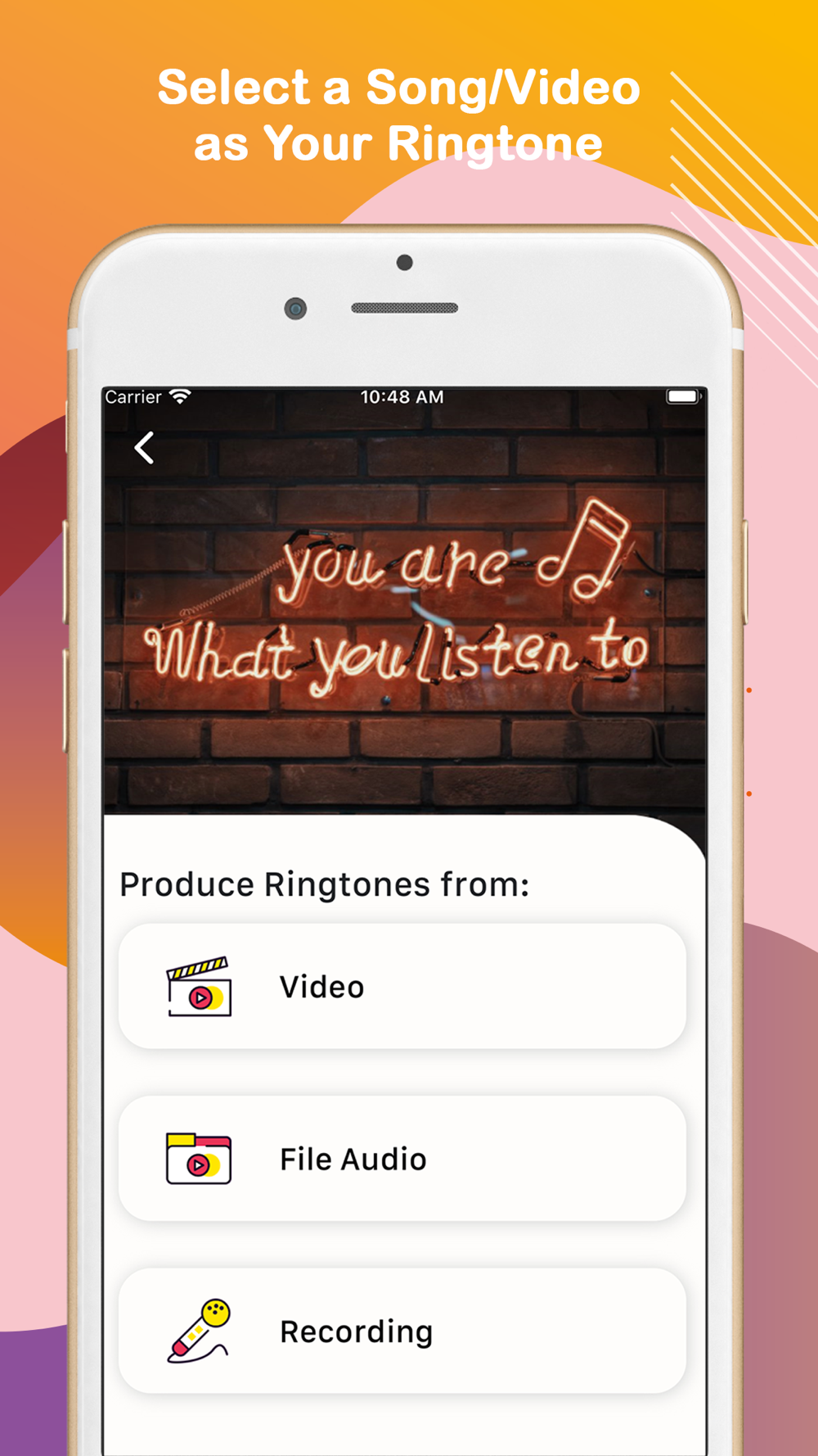 Ringtone Maker is the easiest app to create custom ringtones! Just choose your beloved iPod song, swipe the audio wave to select the perfect clip, and then your ringtone is ready! Incredibly easy and fast!