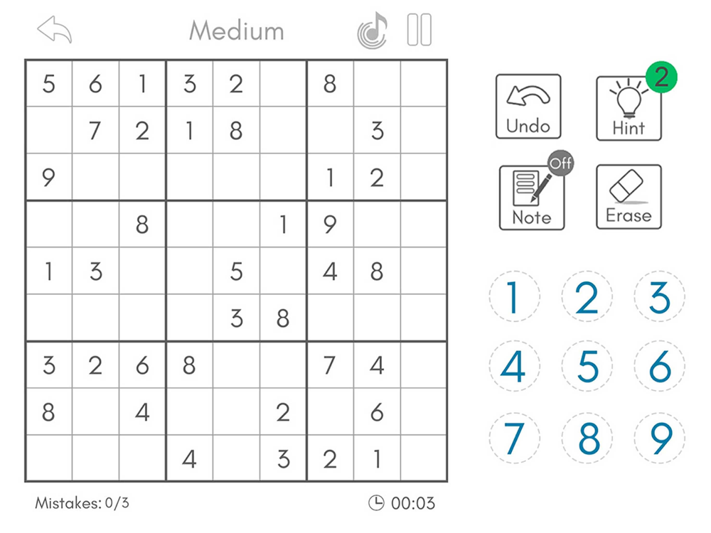 Sudoku King is the same as the old classic Sudoku puzzle game, a well designed exercise mental muscle. Sudoku has been classically known to improve problem-solving speed and IQ, a number games. It is a great brain exercise to improve the mental capability in children.