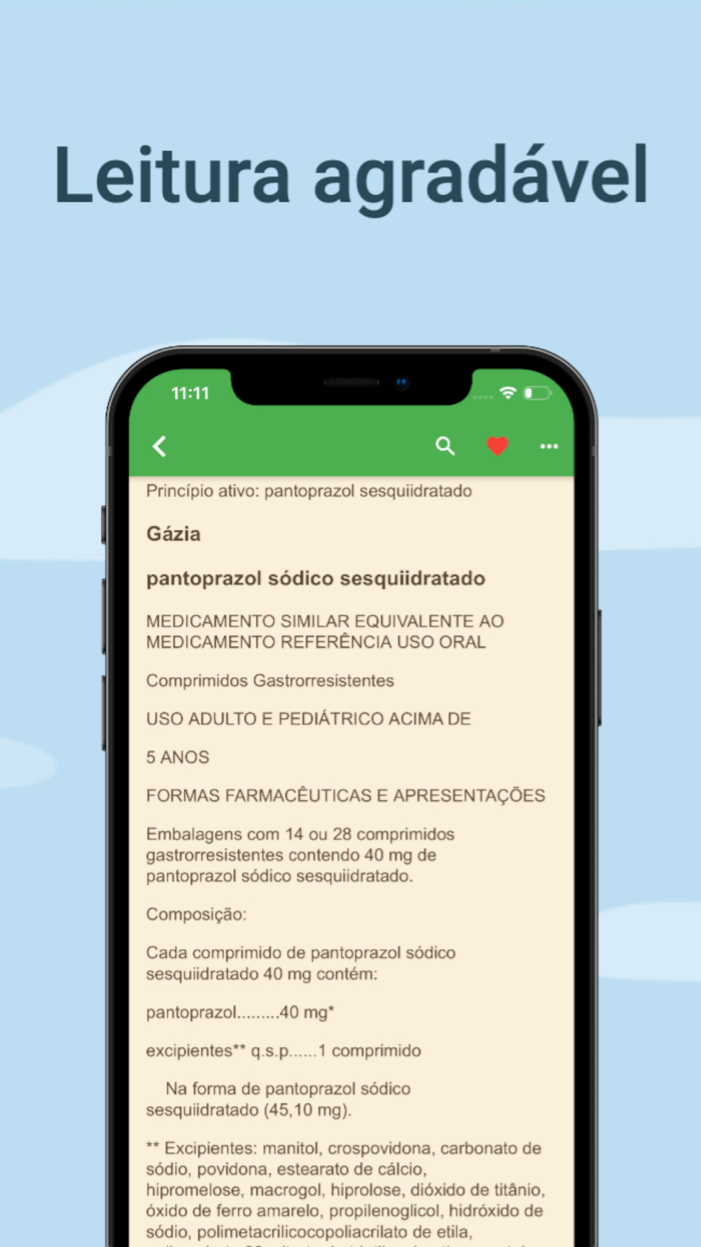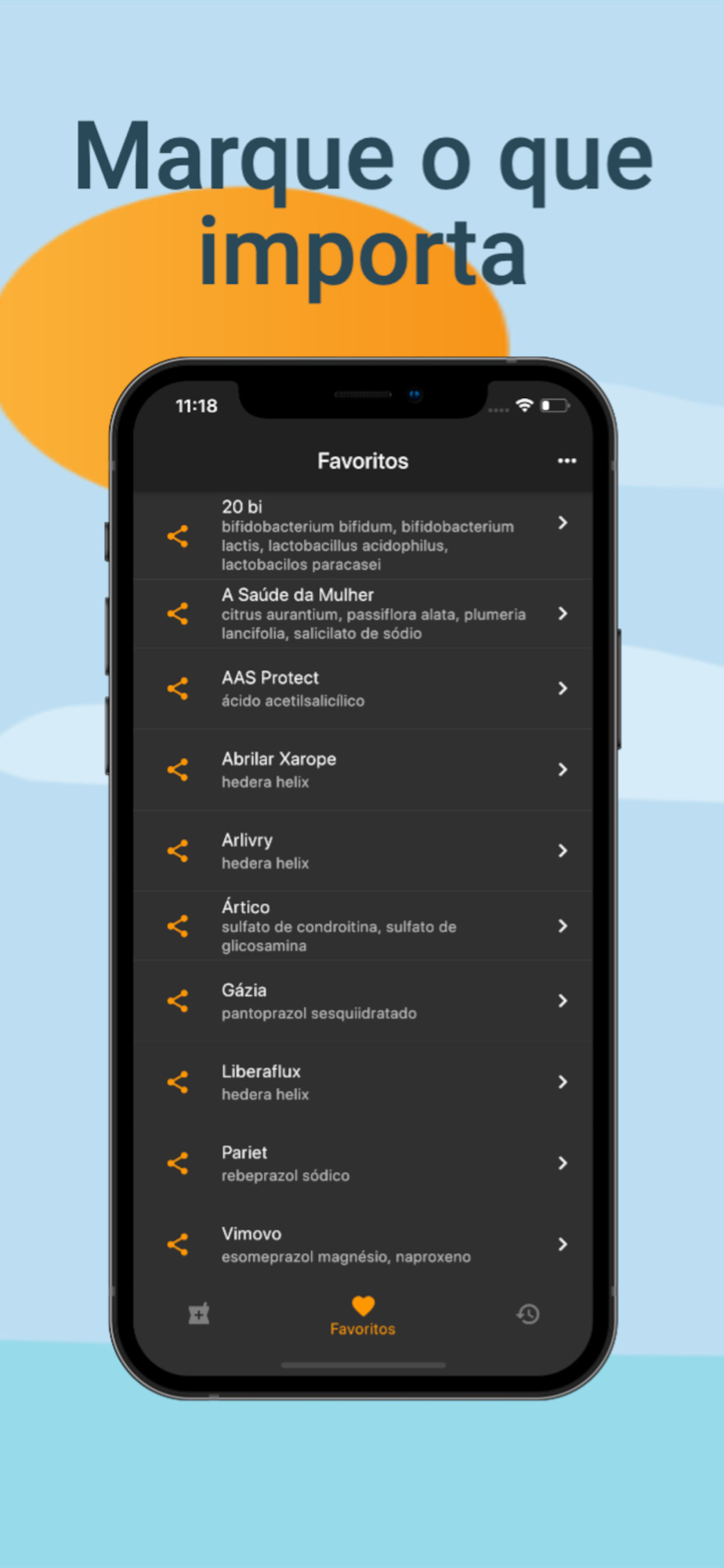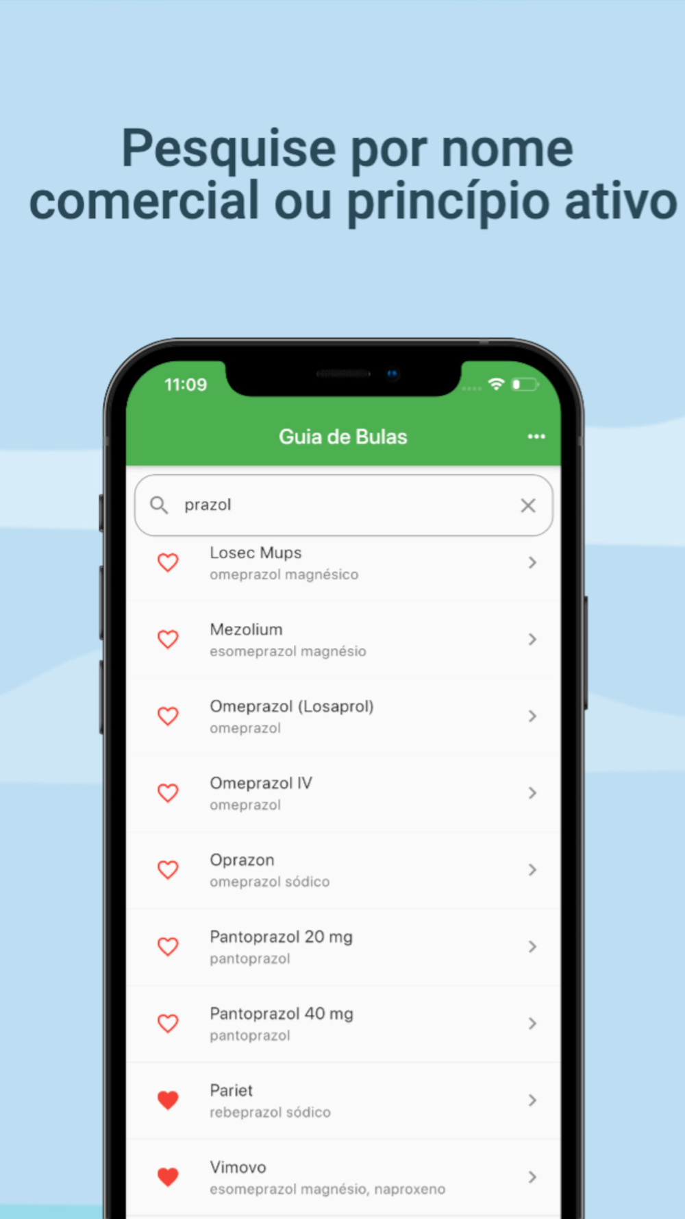 A pesquisa é dinâmica e na mesma tela você visualiza tanto o nome comercial como o nome das substâncias ativas. Descubra novos medicamentos diretamente na tela principal do app.