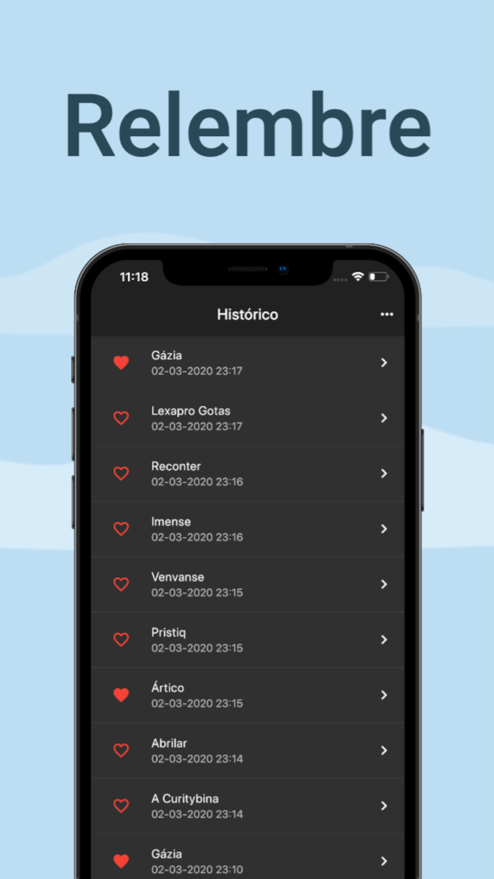 Para sua comodidade, todo o histórico de navegação fica salvo, incluindo data e hora de acesso do medicamento. Você também pode marcar como favorito para acessar determinada bula mais facilmente.