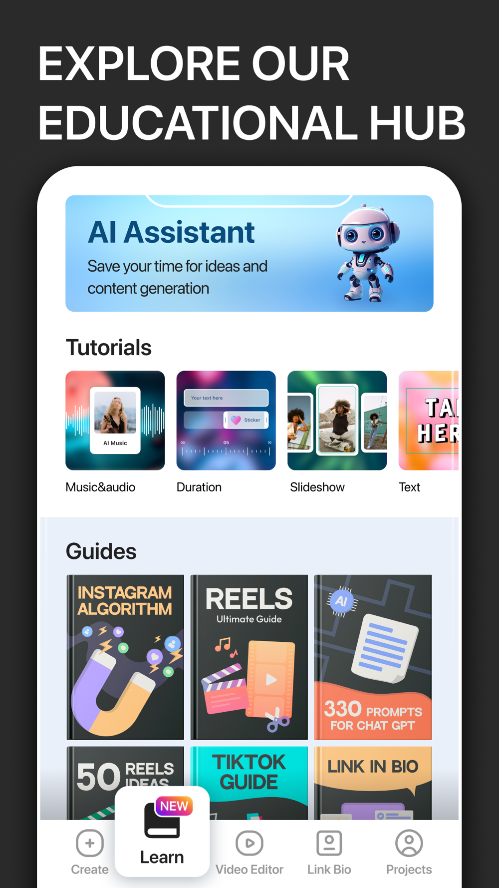 Add music to all your stories in various ways, including popular songs from the charts or unique license-free music tracks powered by AI. You can even add downloaded music from your Files or iTunes or record your voice with Recorder.