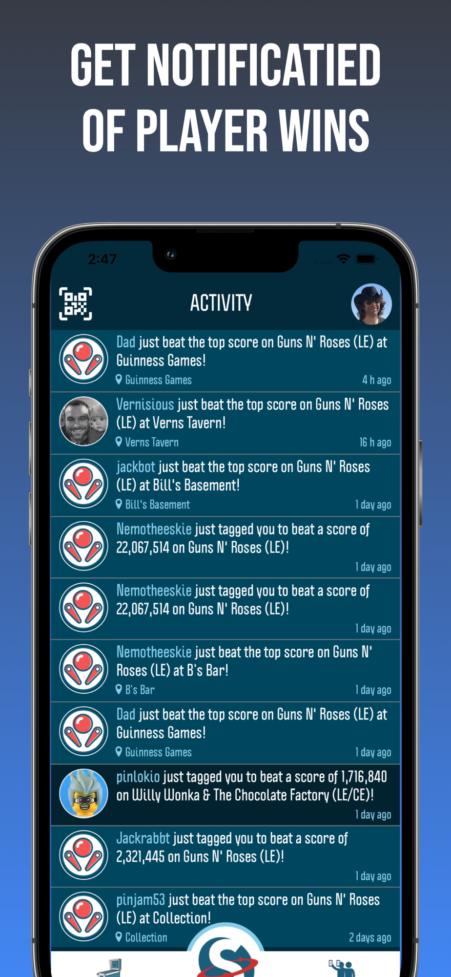 Engage with millions of players around the world. Share and stream live games and scores, earn achievements, challenge others, and participate in machine leaderboards – for any machine in any location! Follow your favorite pinball players and track what games they play and how they are playing. Streamers and collectors can use Scorbit to add real-time scores or leaderboards to their streams and game rooms for big displays! Operators can use Scorbit to monitor their machines remotely, reducing downtime, and earning more revenue.