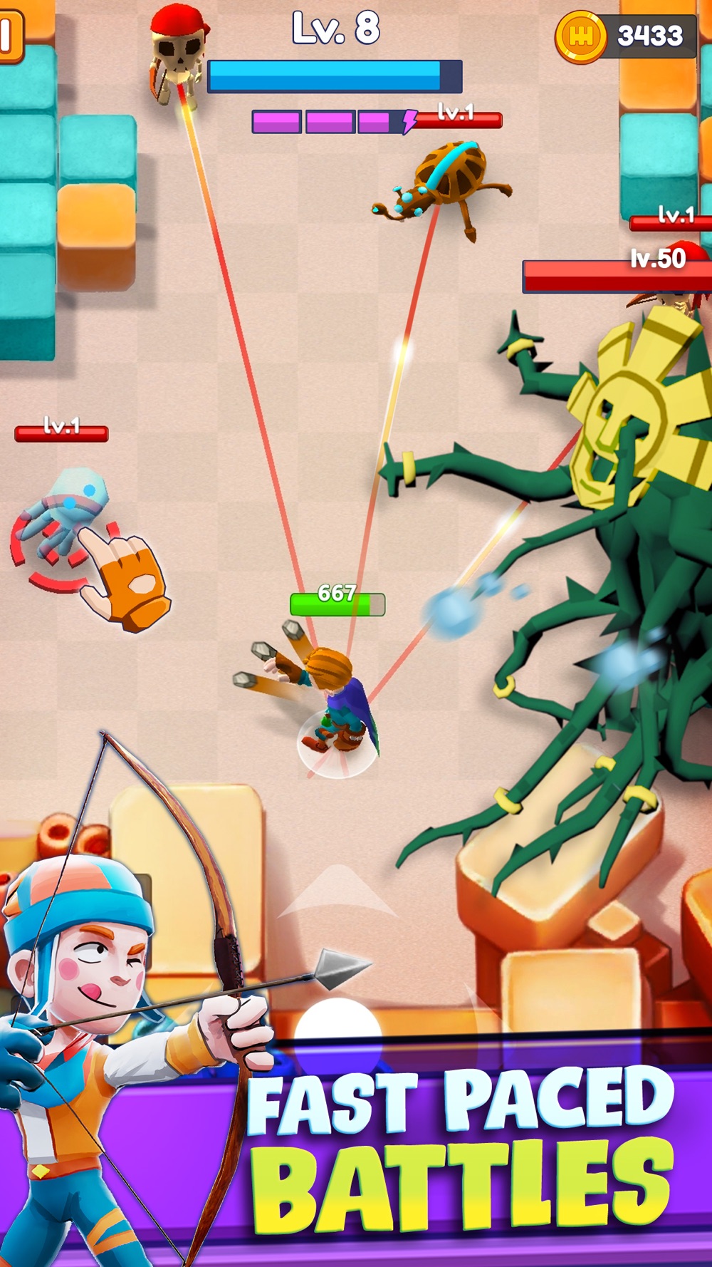 Start a journey where you will destroy evil beasts, mythical bosses, and waves of monsters in battles full of strategy and tactics. Do you have what it takes to become an epic adventure archer?