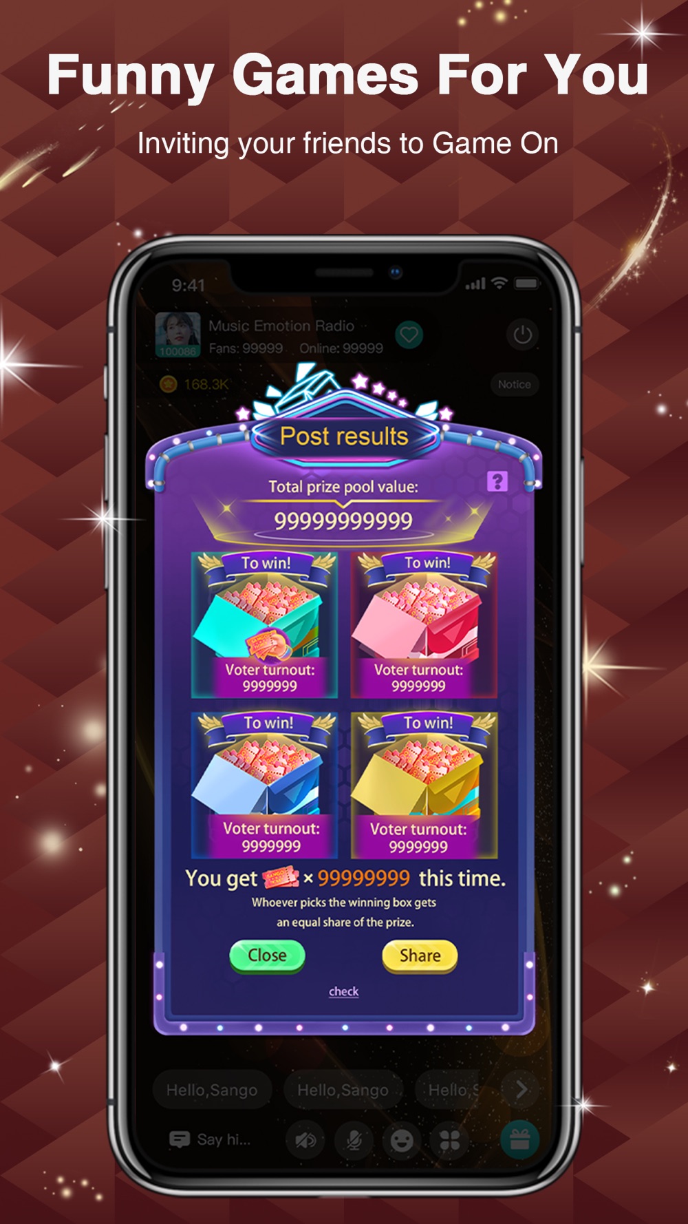 Sango is an interactive Live Group Voice Chat and online entertainment community. Meet new people around the world, play chat games, sing karaoke or PK with friends, chat and have fun together!