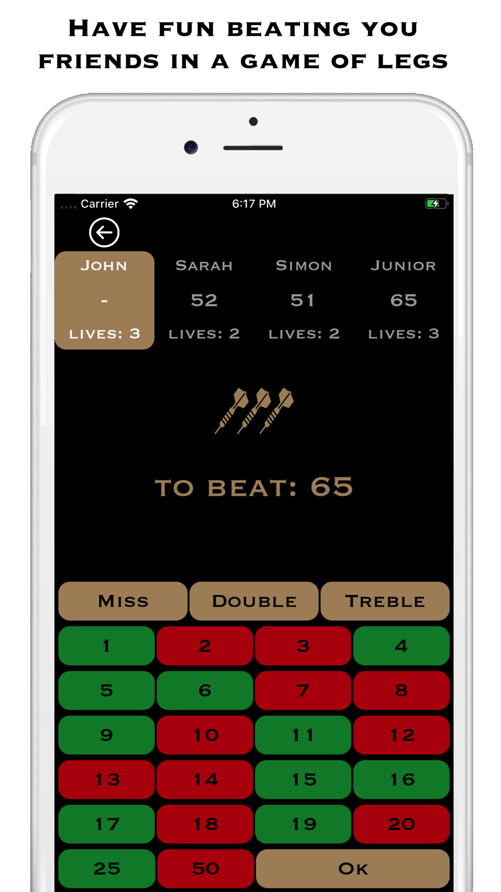 If you are an experienced darter playing against beginners, just enter lower points for your competition, or higher points for yourself.