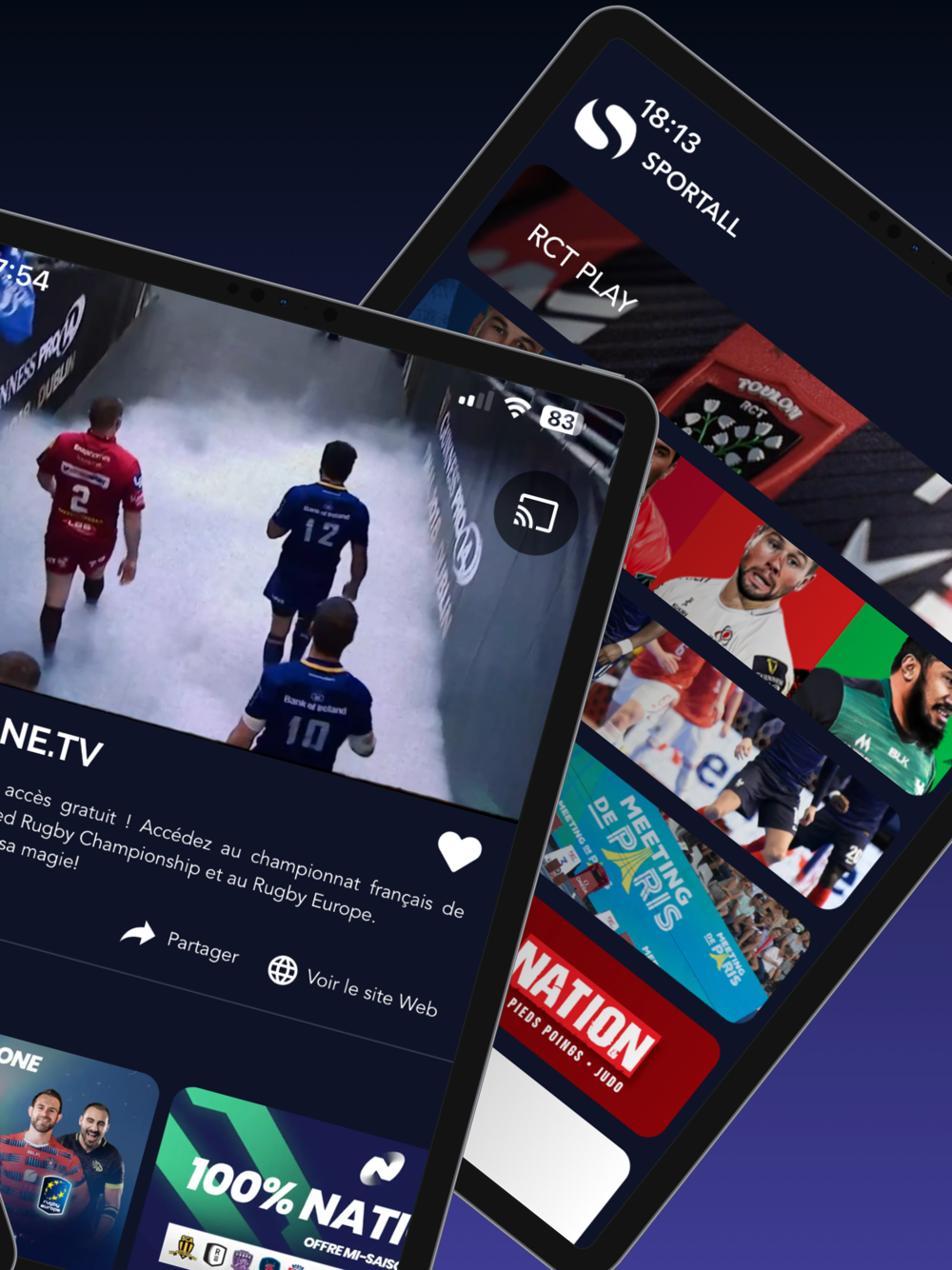 SPORTALL, c'est surtout la plateforme vidéo 100% SPORT, qui vous permet de suivre tous vos sports favoris directement sur votre smartphone, tablette et sur votre TV (équipée de la technologie Chromecast). Suivez TOUS les sports que vous aimez à travers des contenus variés sur la même application unique et innovante..