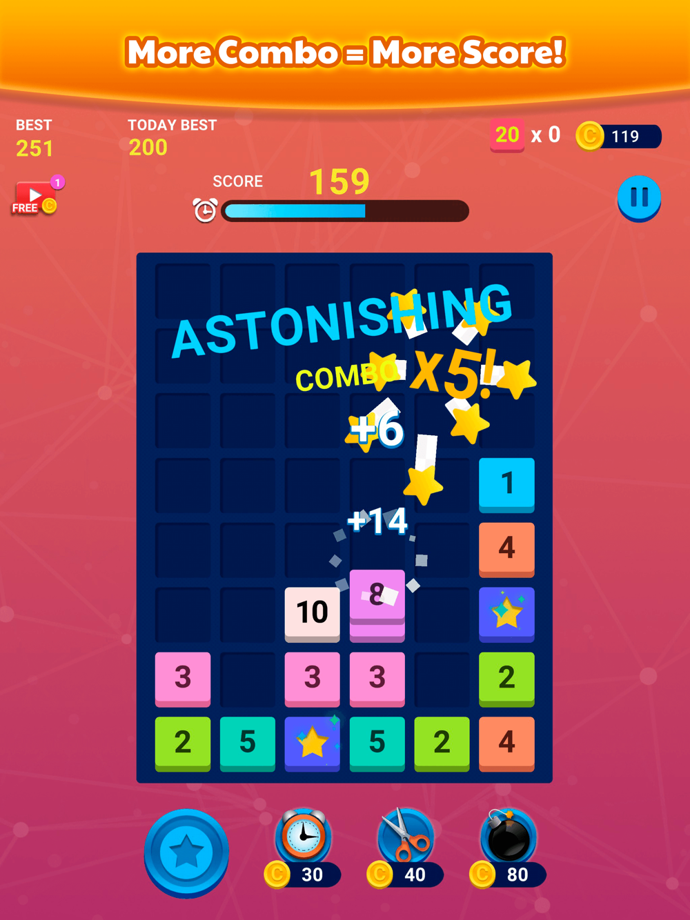 - There are cool additional tools you can use when matching and merging numbers - the scissors, the extra time, the fun props - they make gameplay even more exciting and enhance the fun.
