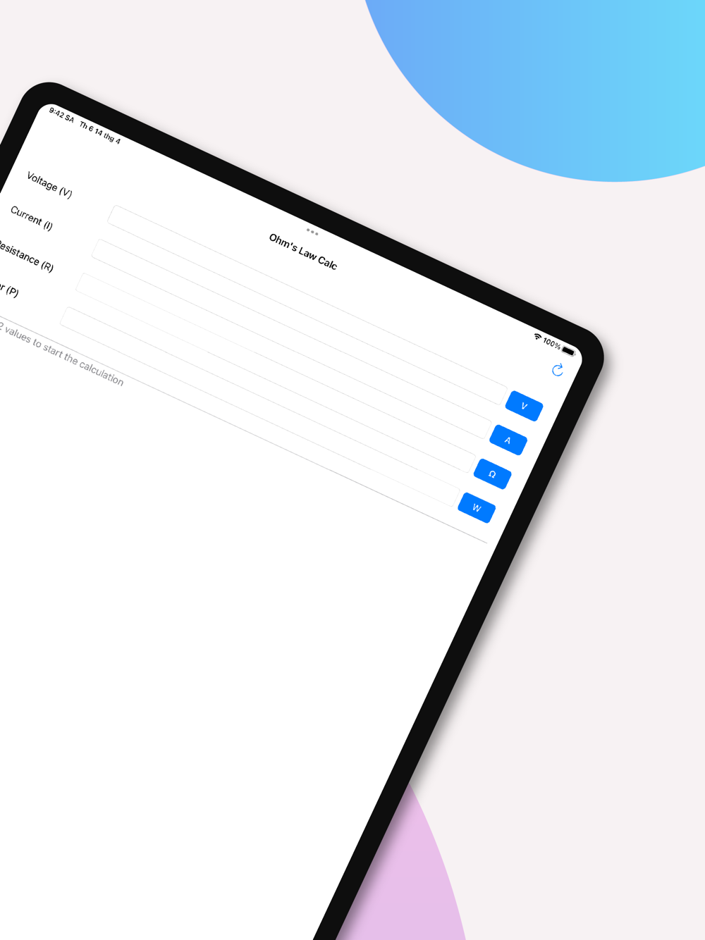 This App will help you to accurately calculate values: Voltage, Current, Resistance, Power. You only need to enter any 2 values mentioned above, this App will automatically calculate for you the remaining values.