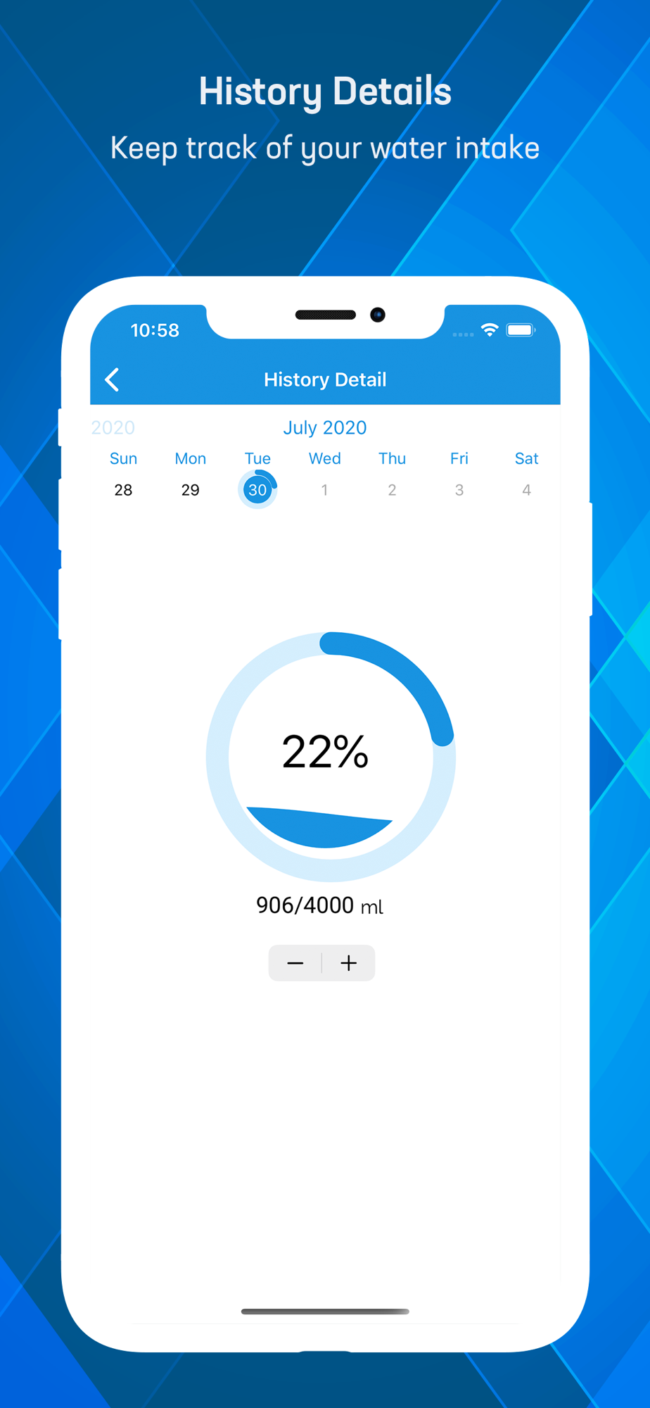 Water is essential for life on our planet. Roughly 70 percent of the body is made of water. We require water for almost every function within our bodies, from flushing out toxins to digestion. Water is essential to good health, yet needs vary between individuals. This app can help ensure you drink enough fluids.