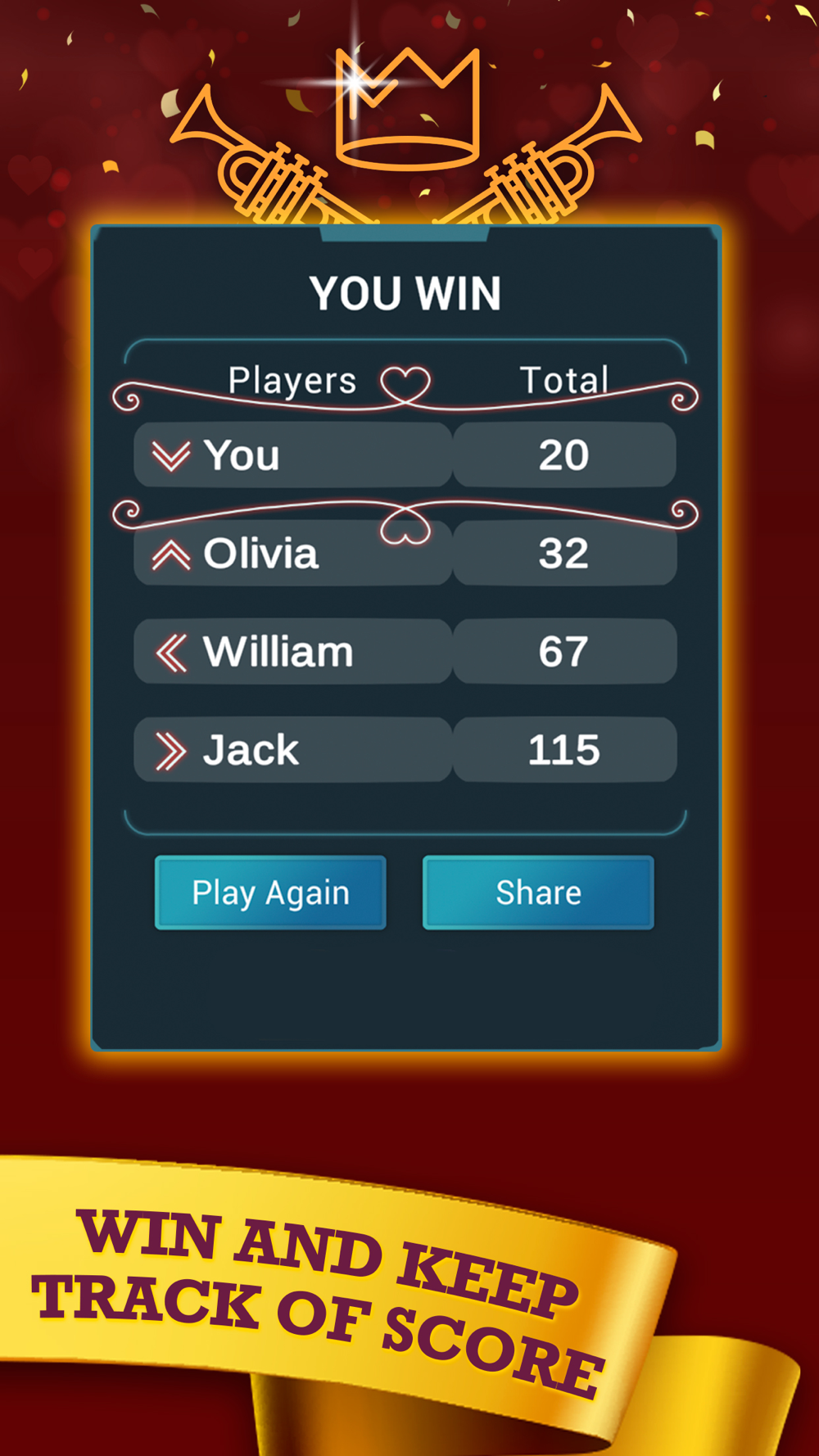 If you haven't tried, but you want to learn how to play Hearts, this card game app is exactly what you need, as it makes it easy for you to get a grip on the hearts game rules in no time.