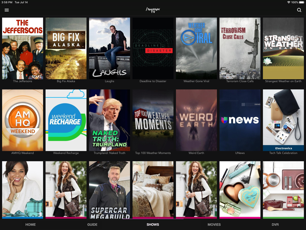 Never miss a show with Sparklight® TV – Turn almost any screen in your home into a TV and record your favorite shows at the touch of a button. Available in select areas only. Visit www.sparklight.com/about-sparklight-tv for details.