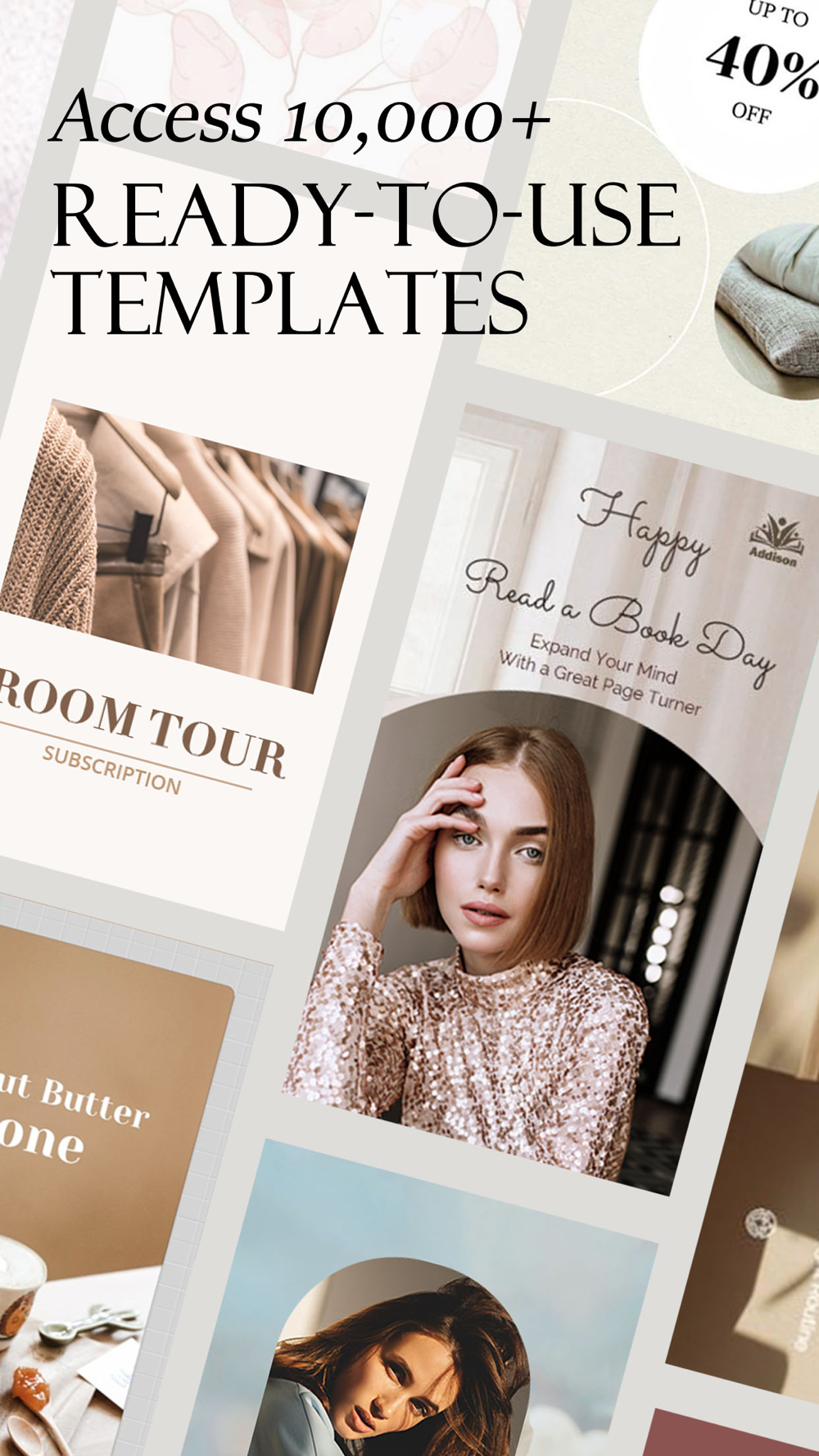 Create stunning designs with no effort. Easily customize ready-to-use templates with simple tools and share them online to get more likes and followers.