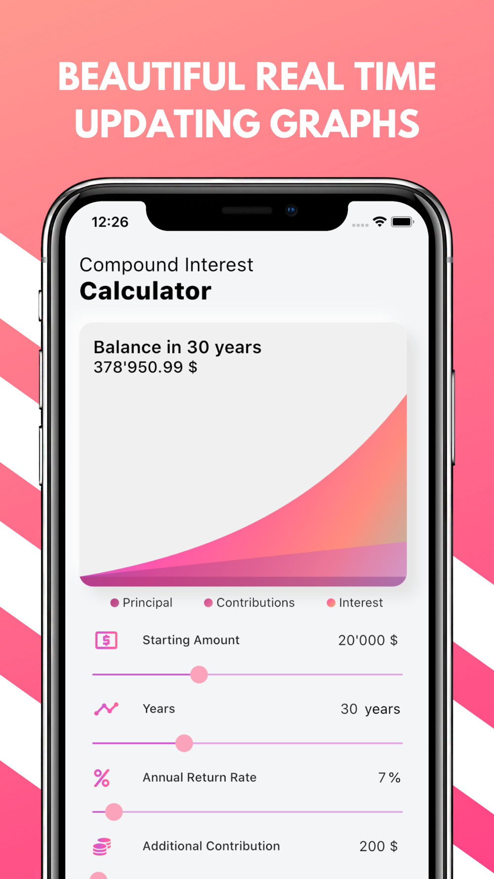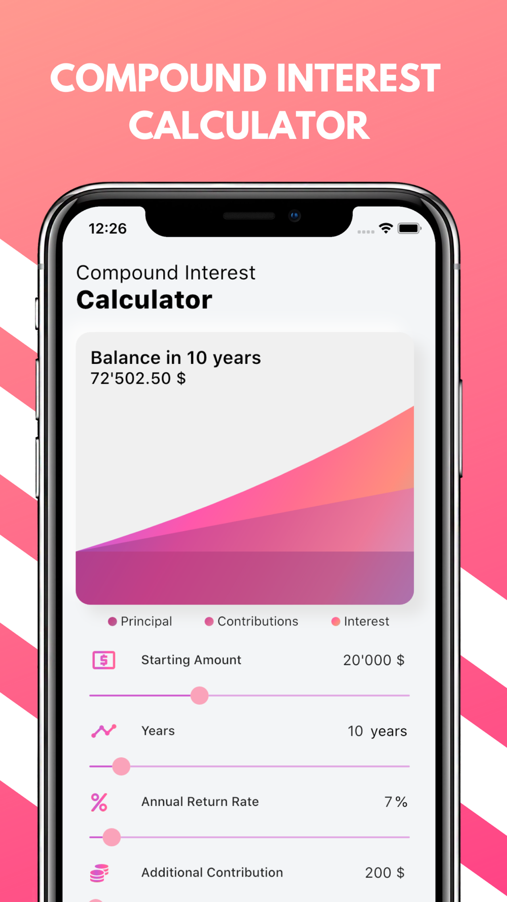 Beautiful looking Compound Interest Calculator to calculate the future value of investments with the power of compound interest.