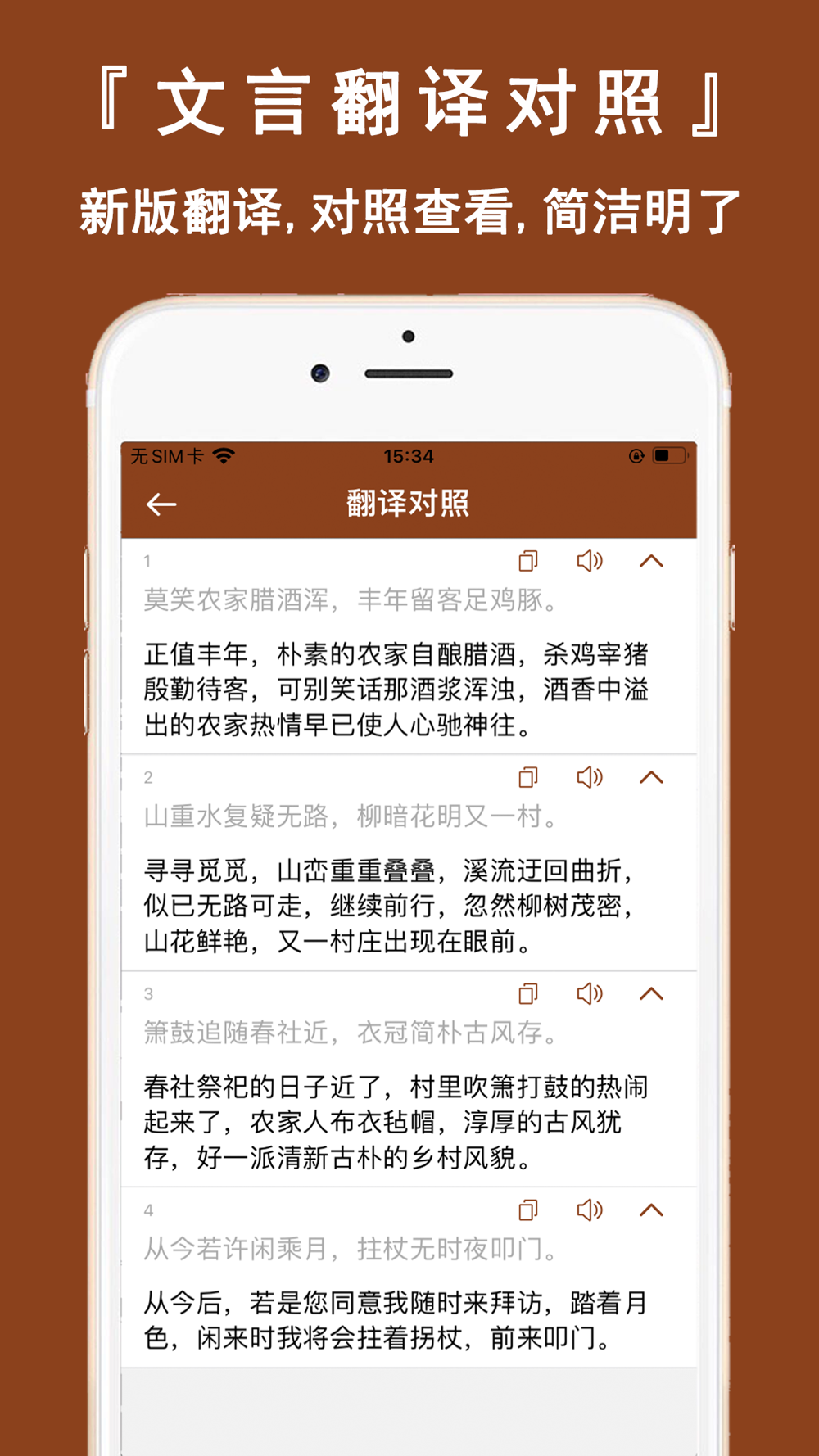 “文言文翻译官”一款专业的文言文翻译和释义软件。支持文言文在线翻译、离线文言文字典查询、文言文查询并全解等。文言文学习,文言文欣赏必备利器。