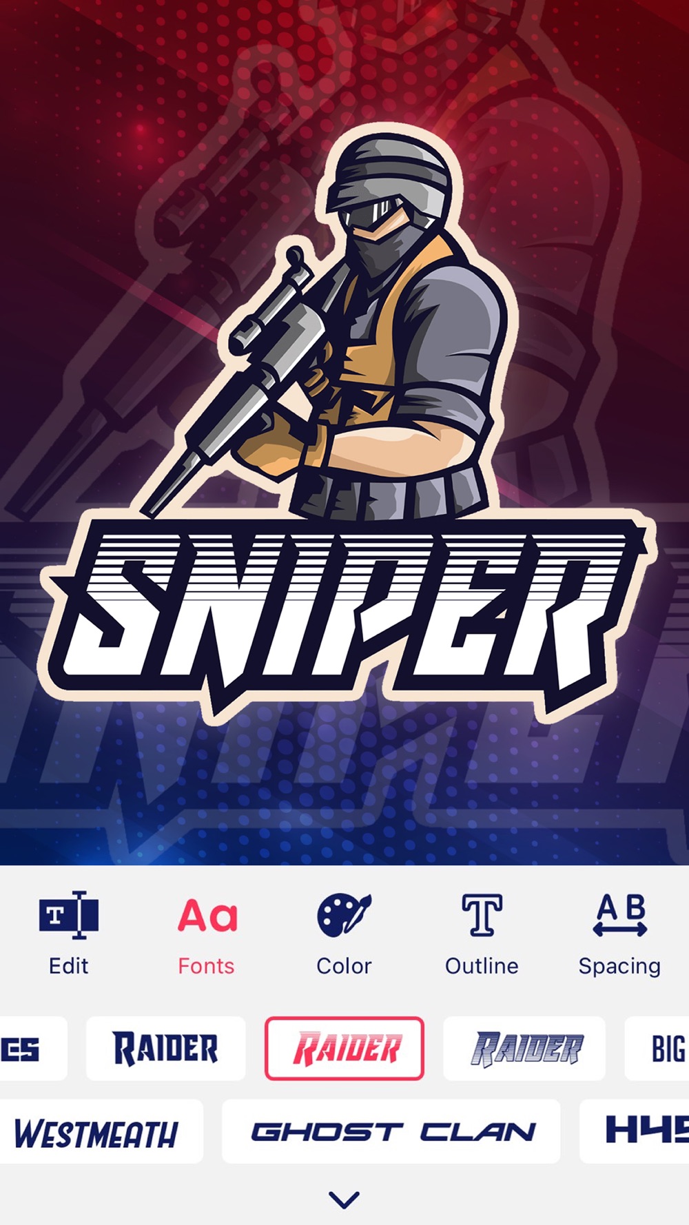 Esport Logo Maker is the best and easy logo designer app to create professional, unique and impressive logos for your gaming team. Esport Logo Maker is specifically focusing on gaming teams or gaming type logos. It is very easy to use and you can create your logo within a second. Logo design work doesn't get simpler than this. Simply choose from over 300+ customizable logo templates created by professional designers. Then edit your chosen design using more than 250+ fonts and background design resources. There are so many different type of icons, avatar and mascot to create logos. Choose logo from 300+ ready to use different type of logo templates like soldier, animal, samurai, ninja, assassin, gamer, archer and skull mascot. Save and share your logos as Transparent PNG or with backgrounds in high resolution.