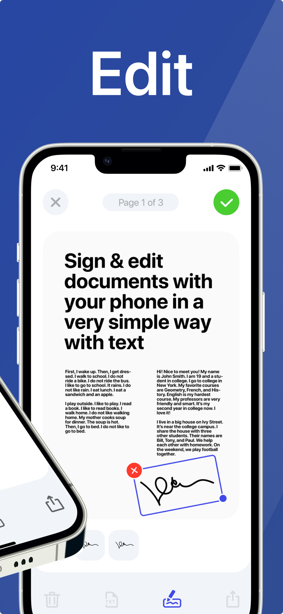 With our app, you can scan, edit, sign, store, and share your docs in PDF.