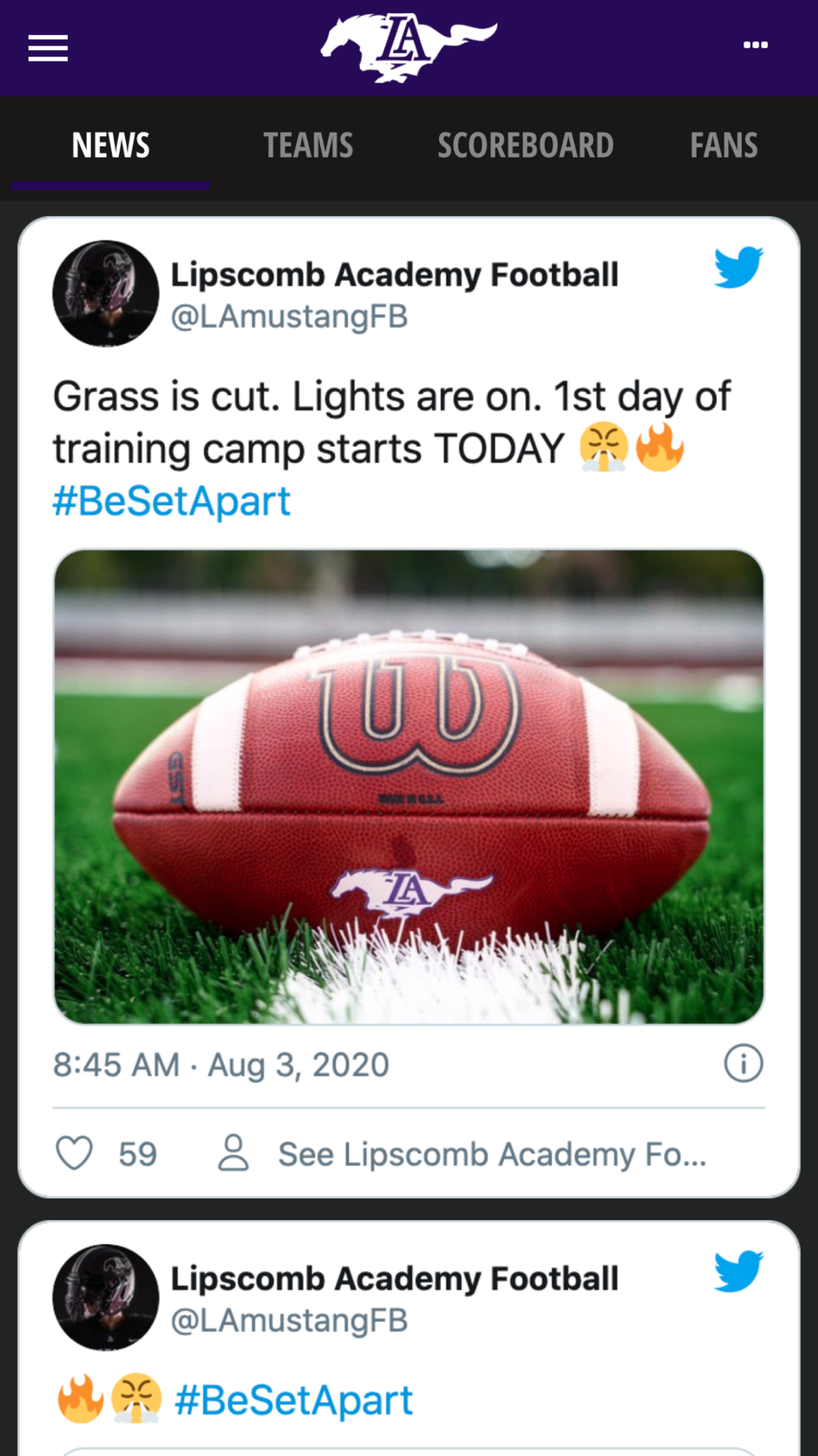 features LIVE scoring, schedules, news updates, social media feeds and rosters for all participating Lipscomb Academy Football teams.