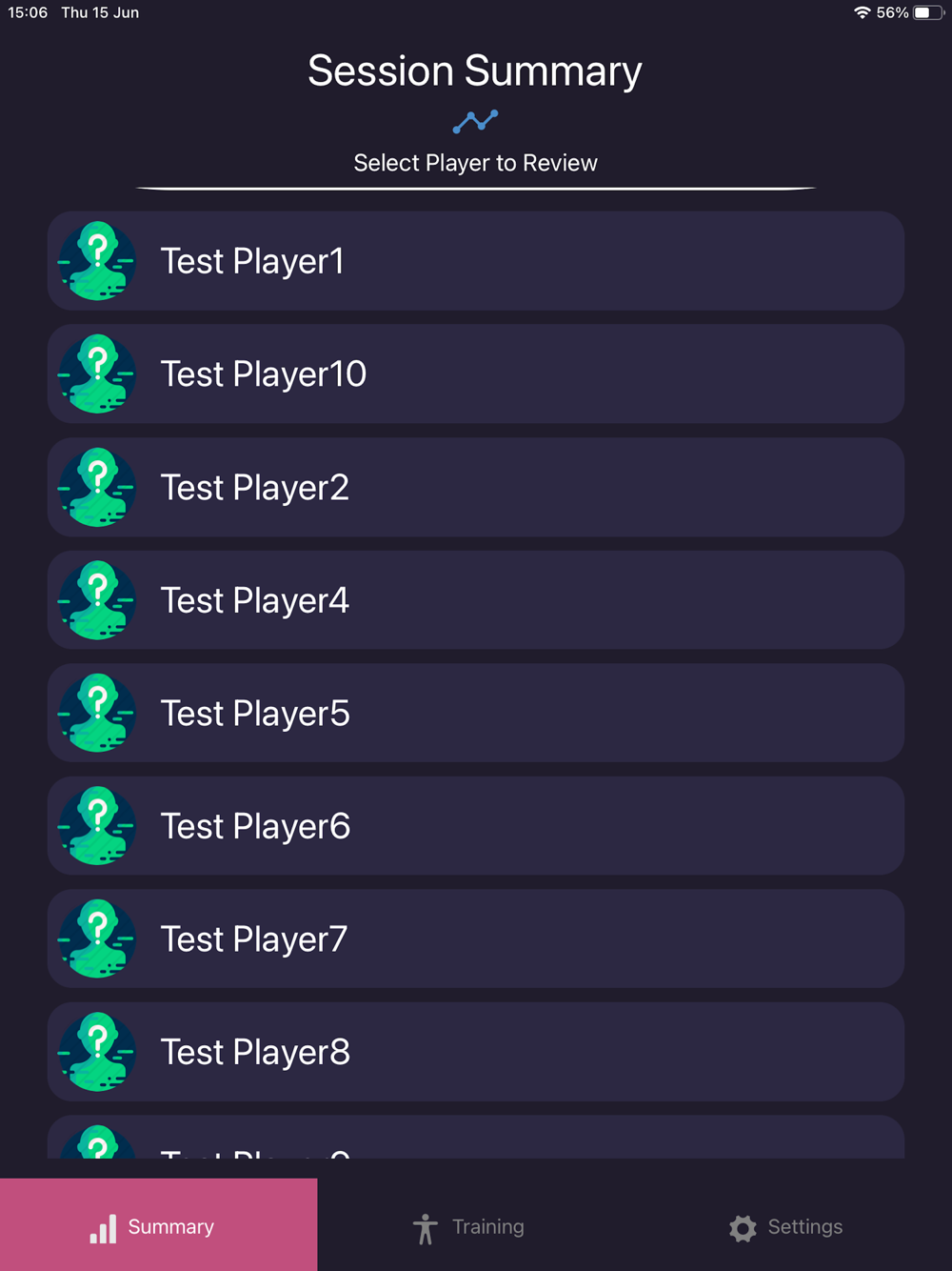- The dashboard displays the athletic state of the players with both live and post-event evaluations.