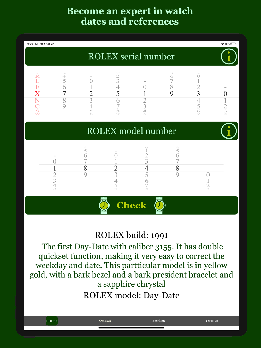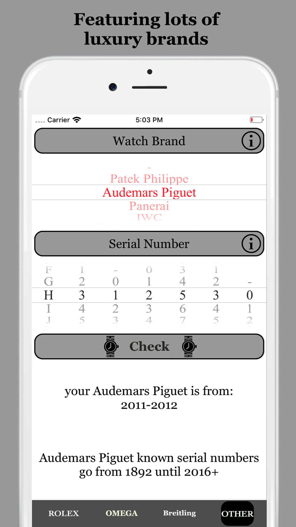 Look up the age, model and specifics of your Rolex, Breitling or Omega. And find out production dates on lots of other brands!