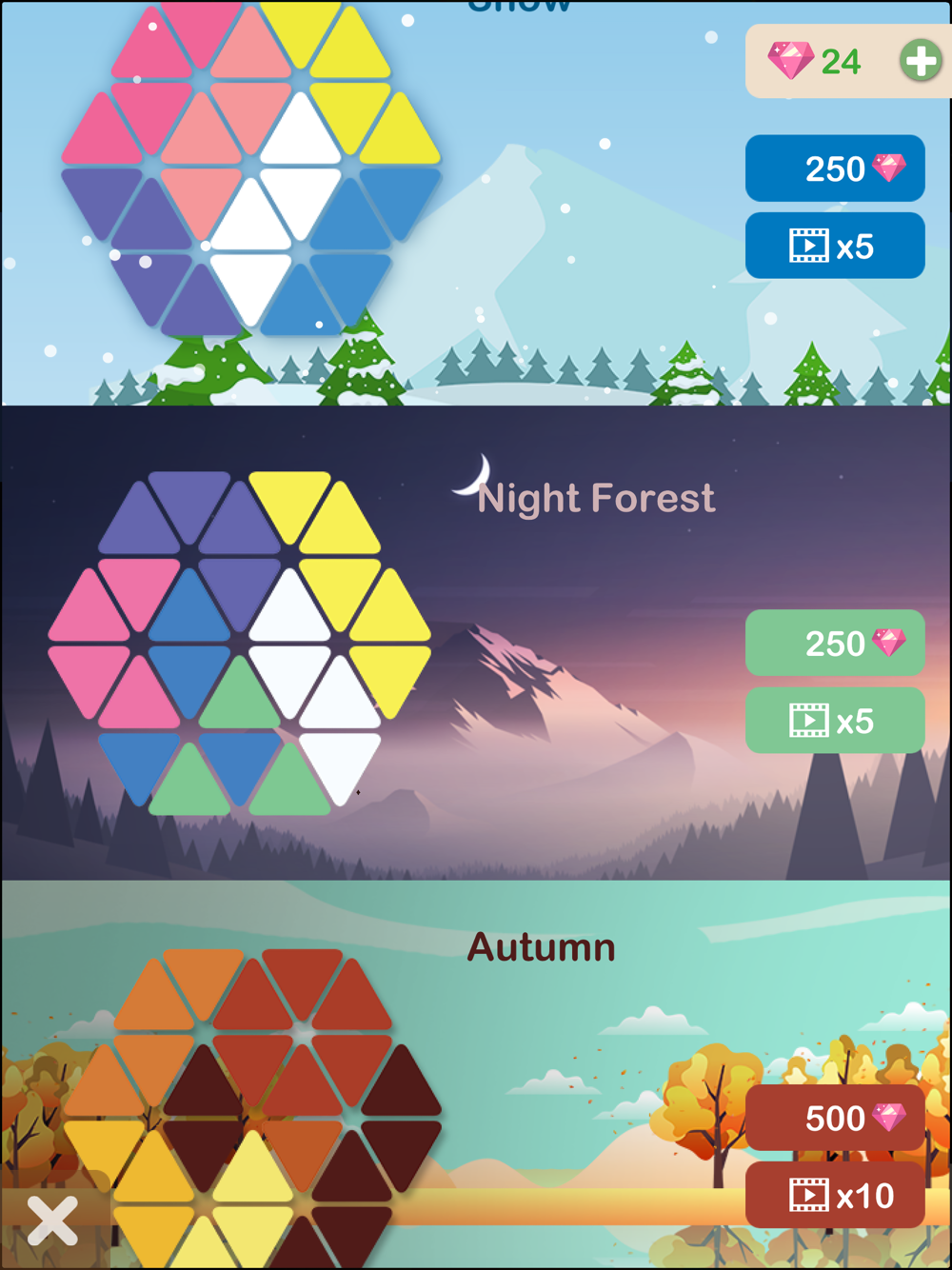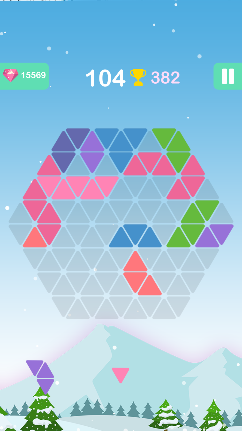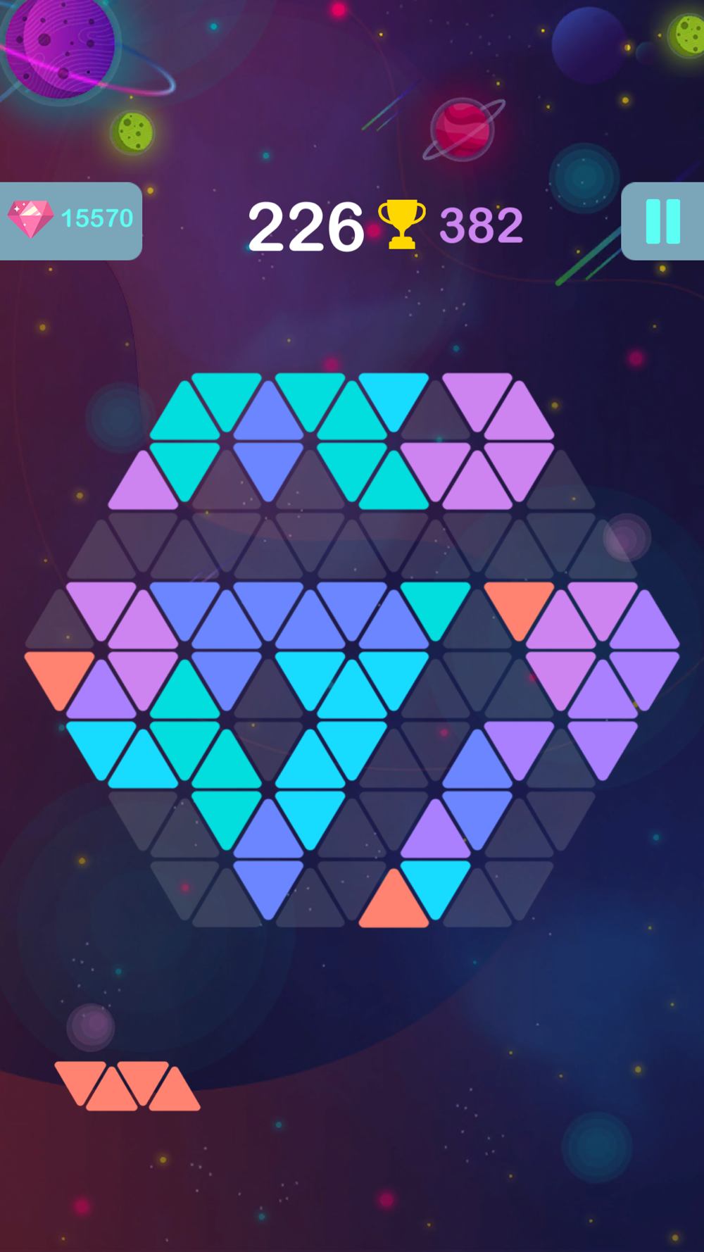 Este é um novo jogo de quebra-cabeça com um novo estilo e uma nova jogabilidade. É um criativo de triângulo e hexágono para fazer jogo de quebra-cabeça.