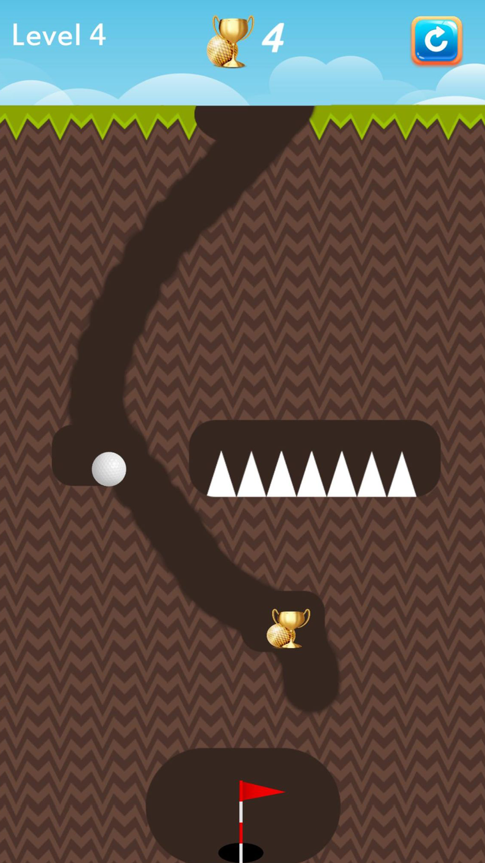 Dig a hole into the ground & guide the golf ball to a hole in 1. If you miss the hole you will need to start all over again. Collect trophies in each level & pass them all will perfection. This is a simple game for someone who just wants a simple way to pass the time.