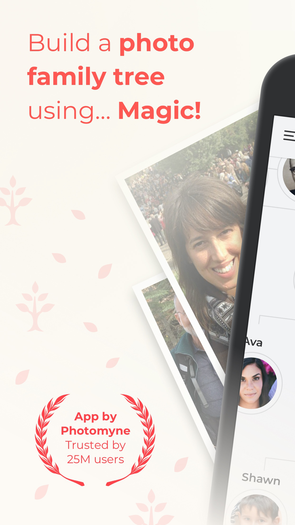 Brought to you by the developer of the smartest photo scanner app, Photomyne is proud to offer Photo Family Tree, the app for building your family tree using magic. Just upload family photos, watch the app detect faces automatically, assign faces to relatives, and that’s it - your family tree is ready. Enjoy the app’s added bonus of discovering your similarity score - how much you resemble other relatives in your tree.