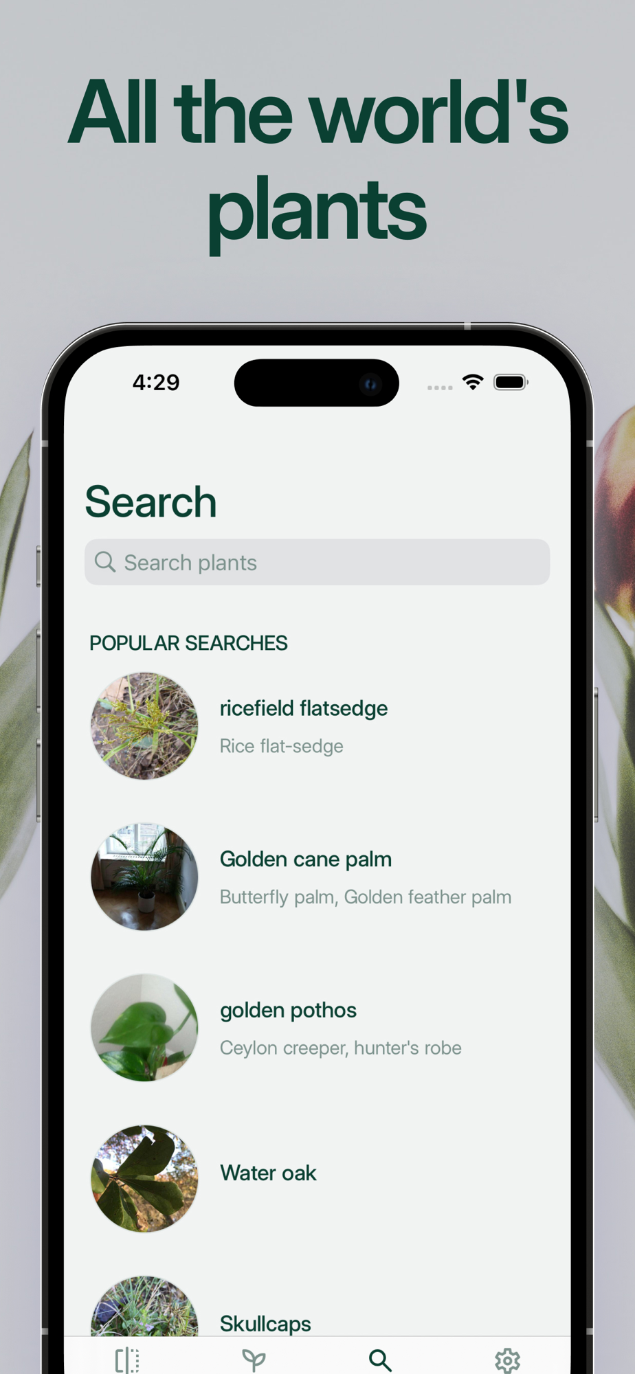 * SEARCH for any plant in the world with our database of over 10,000 plants