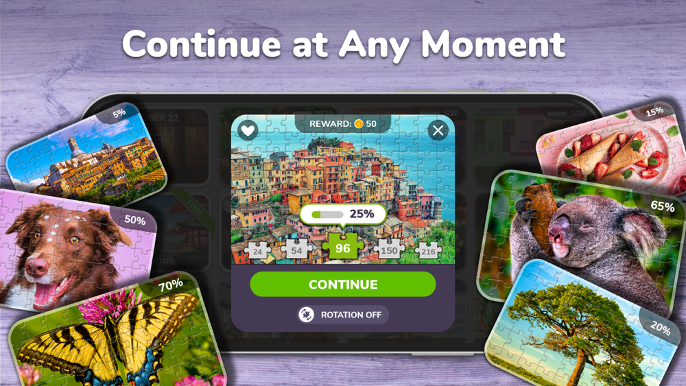 Enjoy free coins, but also try your skills at solving jigsaw puzzles for free and start earning coins yourself! The more coins you win, the more exciting puzzle games you'll be able to unlock! Get on board this super fun jigsaw puzzle games app and get ready to play online or offline - you are in for an epic jigsaw puzzle adventure. We look forward to hearing all about it through your ratings and reviews!