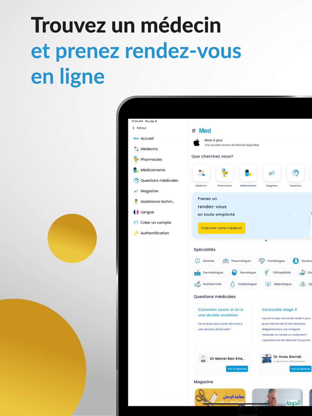 4- Questions médicales: Doute, inquiétude ou besoin d'aide, posez votre question médicale en ligne en toute sécurité directement depuis l'application et recevez une notification instantanée pour chaque réponse. Des centaines de médecins sont prêts à vous répondre.