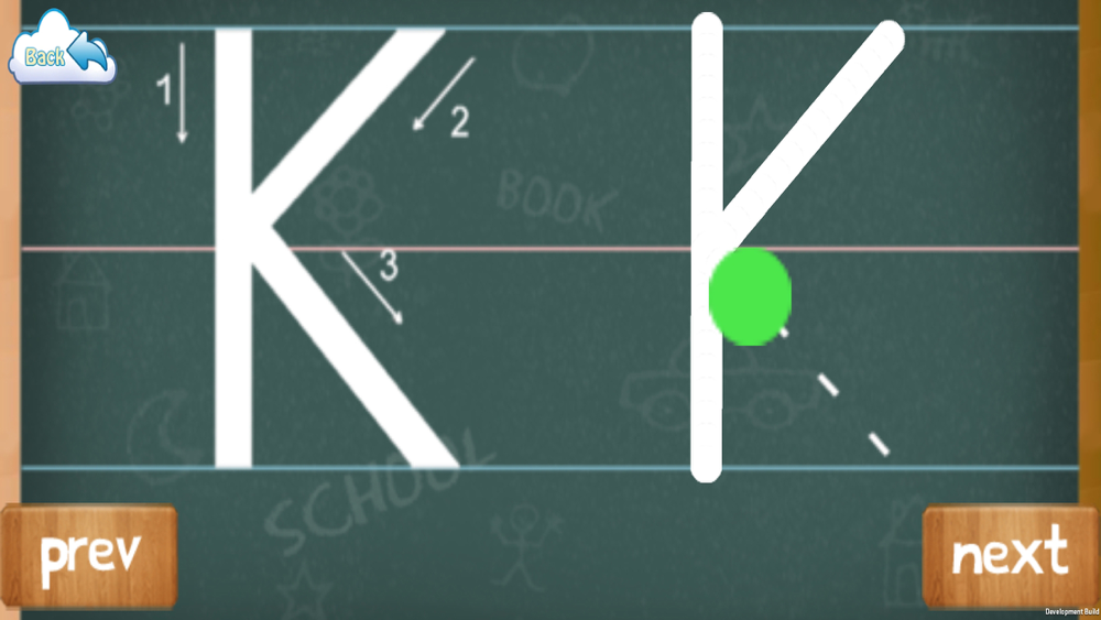 * Writing - Your child will learn how to write the letters. There will be a green board like in the classroom and dotted lines that help them write the letters from A to Z. Writing along dotted lines is definitely fun for kids!