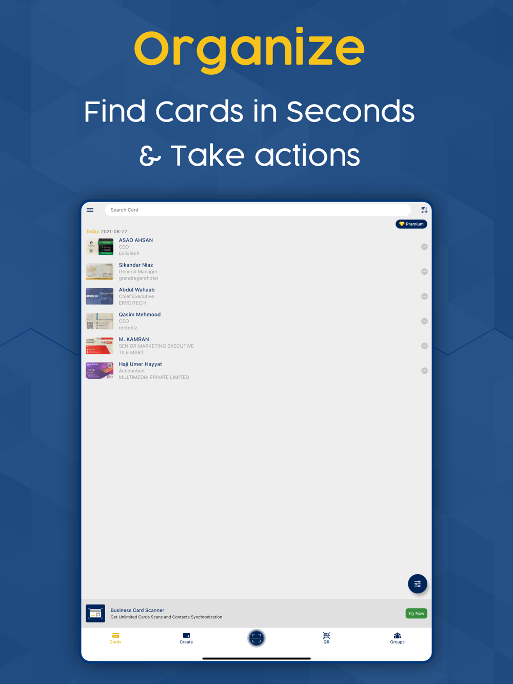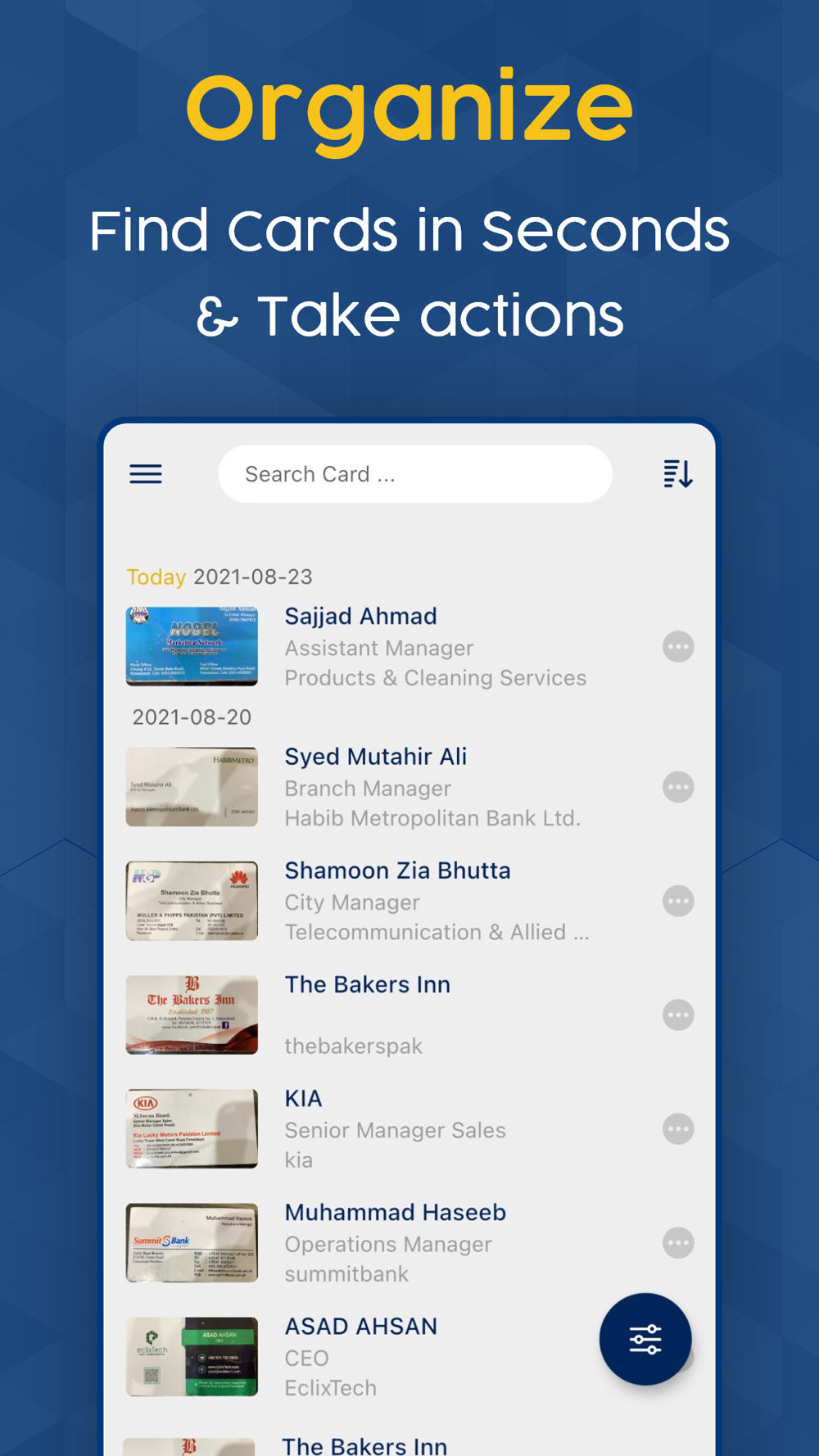 So, say goodbye to piles of paper business cards right now, and scan and organize your card contacts into a digitized form using the business card organizer app.