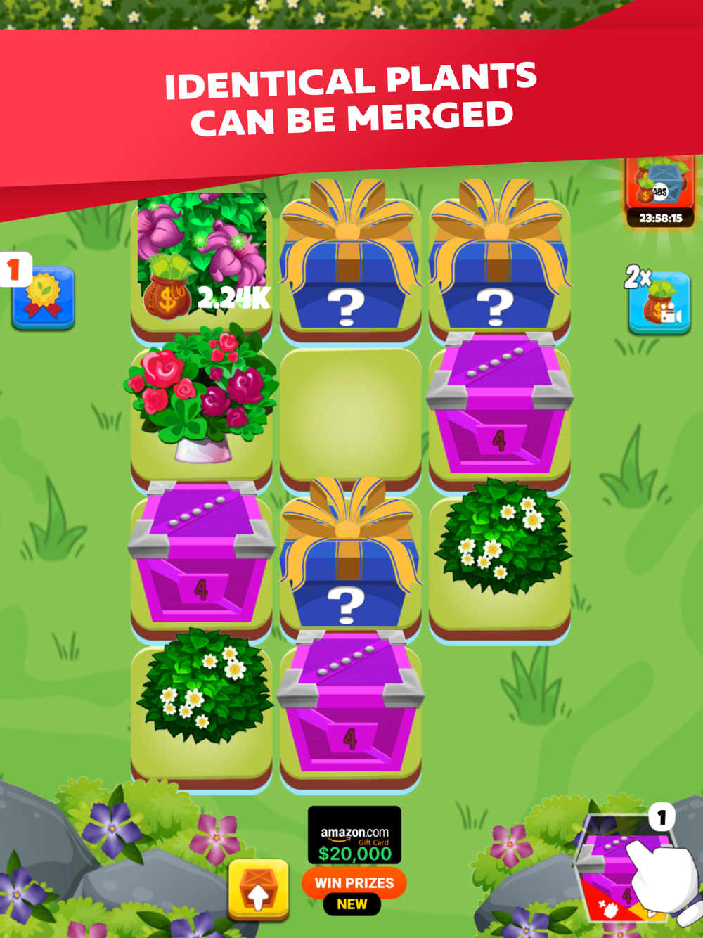 Merge identical flowers to earn money and build