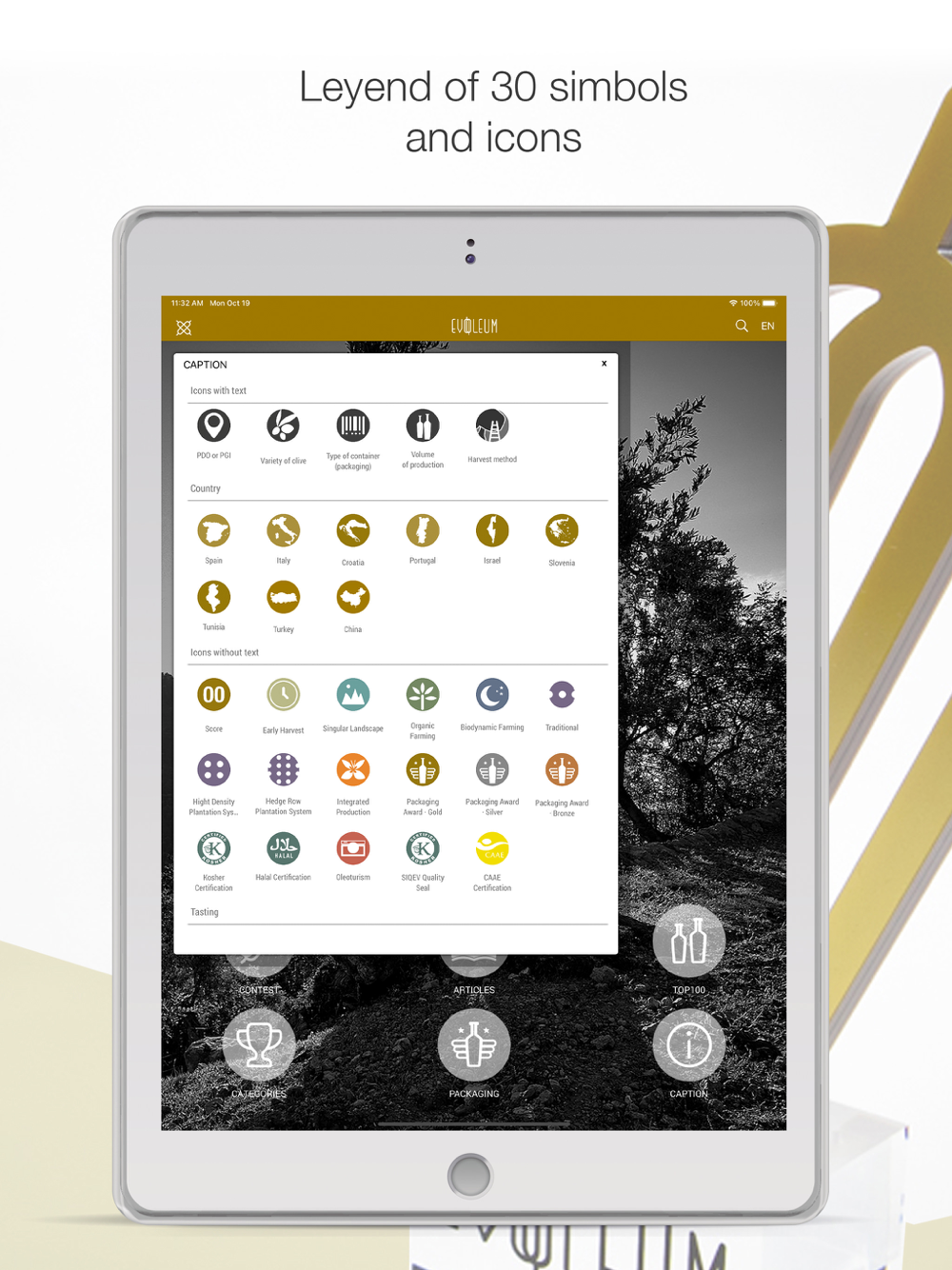 EVOOLEUM showcases the 100 best EVOOs in the world according to the results obtained in the EVOOLEUM Awards. A deluxe edition, prologued by the renowned 3 Michelin-star chef Joan Roca (Celler de Can Roca), where the user can find Mediterranean recipes by chef Paco Morales (Noor), the healthiest appetizers, all the gourmet shops in the world, the false myths about extra virgin olive oil, olive-growing landscapes around the world, pairings... and more, much more. A unique app that has become the most influential worldwide.