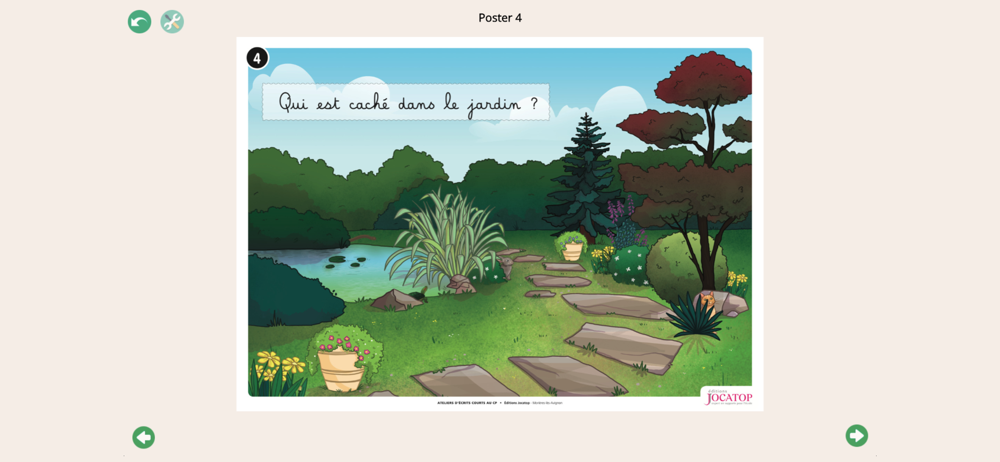 L’application JOCASTORE permet de projeter les posters et les flashcards, ainsi que toutes les fiches pour les élèves : fiches répertoire, fiches de production d’écrit, fiches de jogging d’écriture.