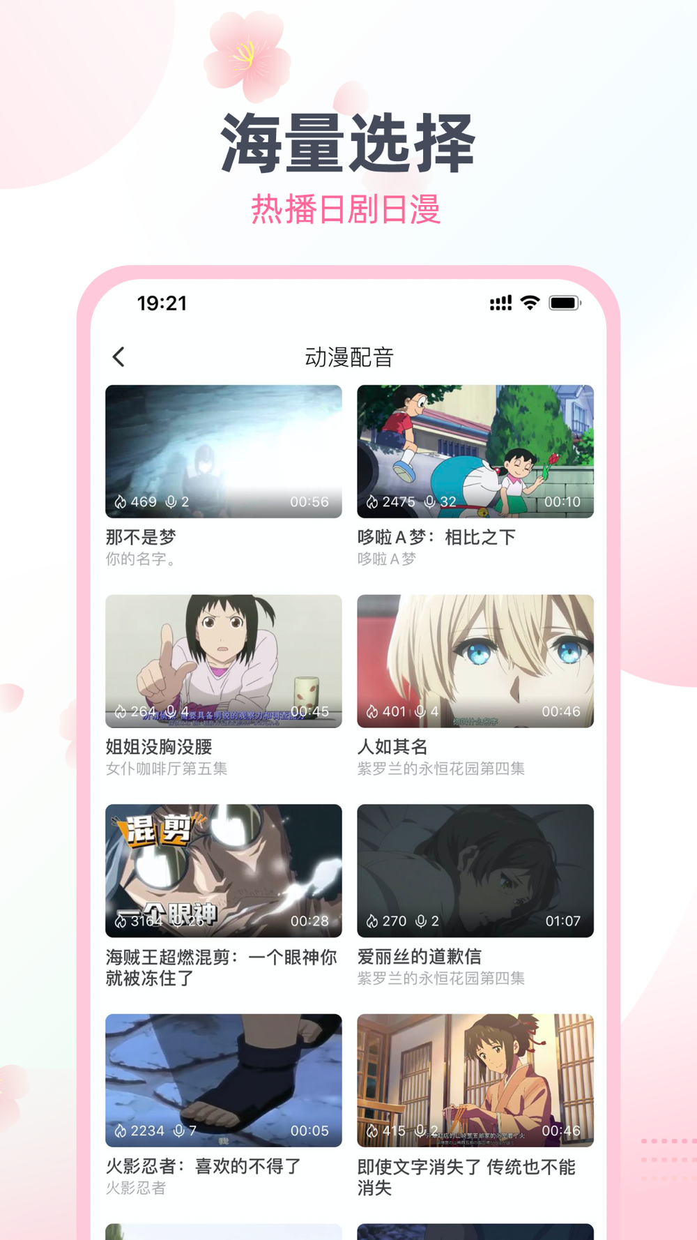 为喜欢的日剧日漫配音,在练习口语的同时,重温经典场景,掌握单词和语法,更好玩、更轻松、更投入!