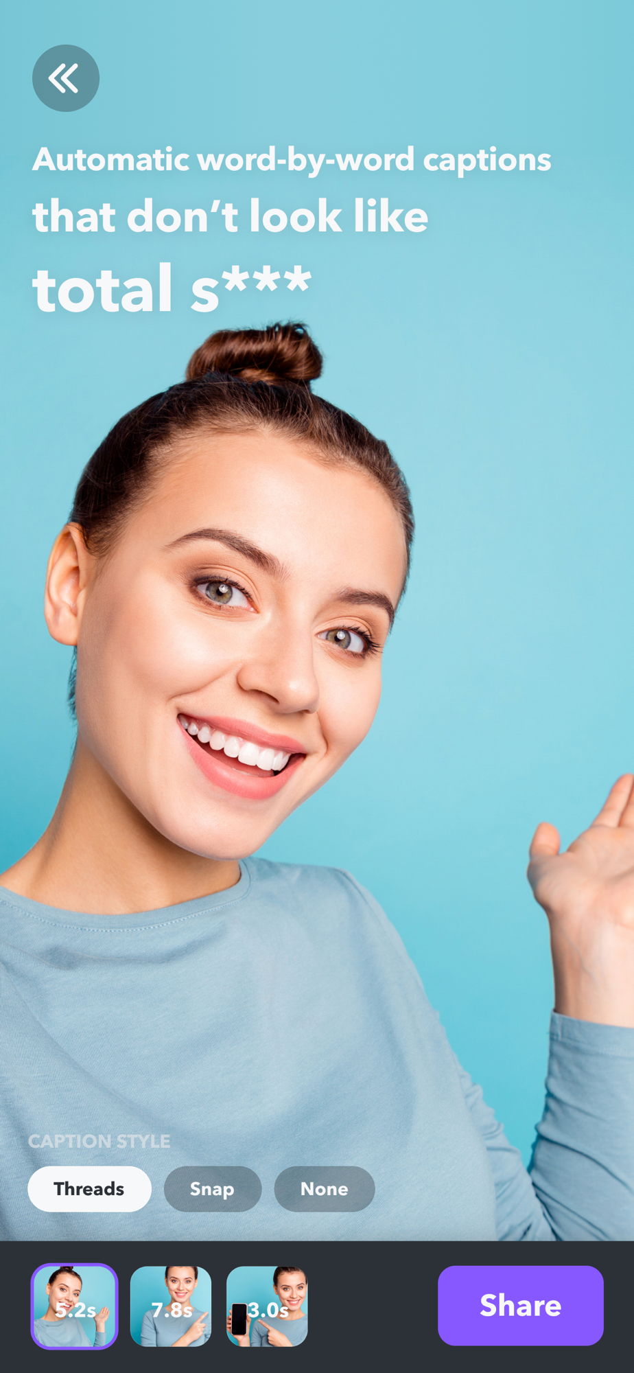 Forget typing in captions for your videos by hand every time you’re ready to post. “Captions” will automatically create captions for your videos and give you editing power to adjust content before you’re done. Simply export your finished captioned video and share it wherever you want.