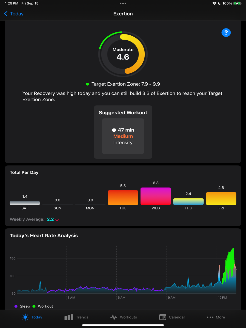 EXERTION and TARGET EXERTION: We monitor your cardiovascular load 24/7 and each day provide you with a Target Exertion range to stay in if you are training today based on your Recovery.