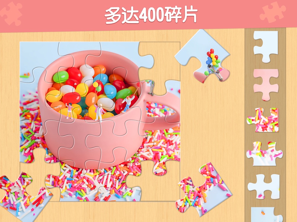 · 碎片数量自定义:16-400个碎片,无论你是初学孩童还是拼图专家,都可以轻松找到适合自己的难度。