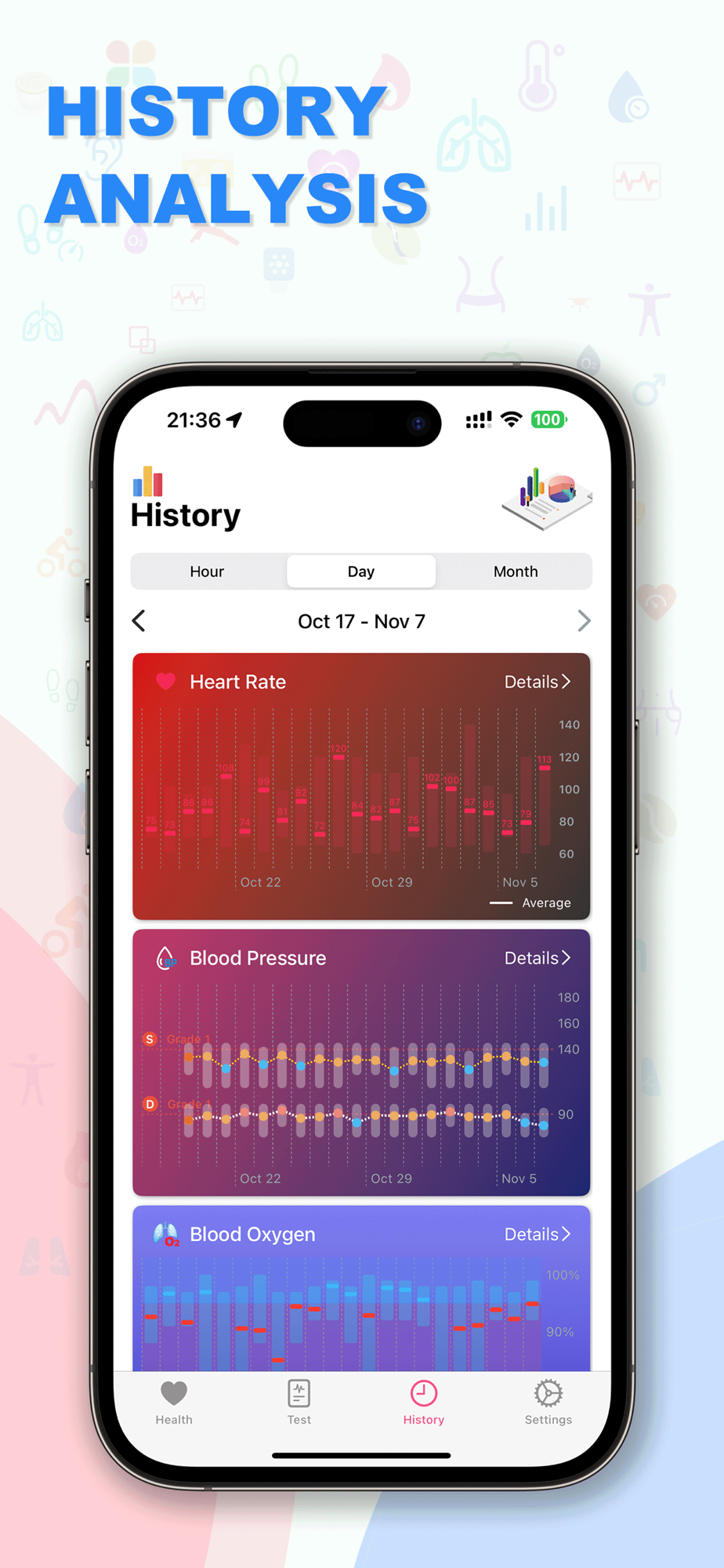 You can track your blood pressure and other important health metrics with ease, and track trends over time. With just your phone's camera, easily monitor your heart rate.