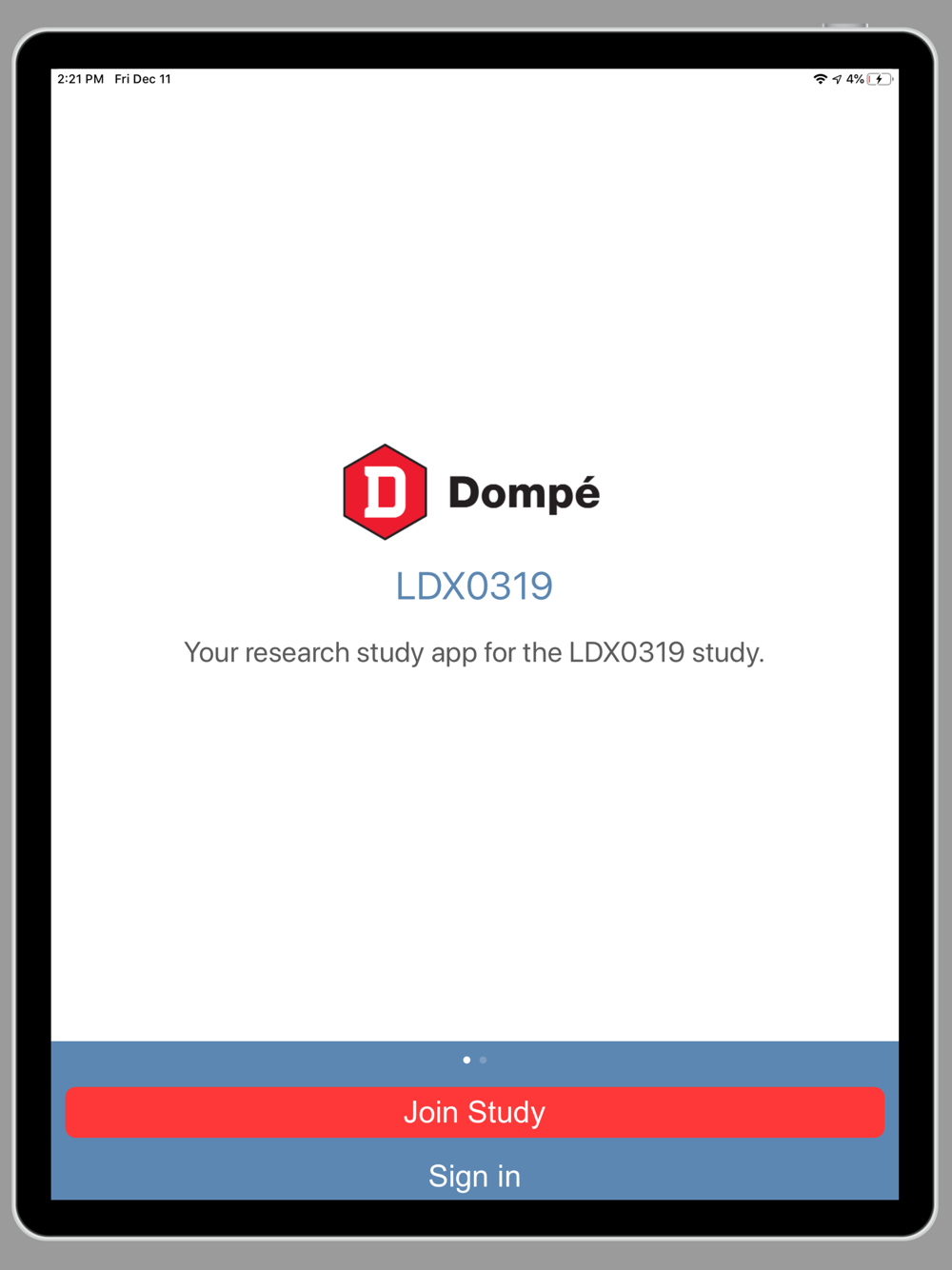 You will use this app to complete questionnaires throughout your participation in the LDX0319 Study.