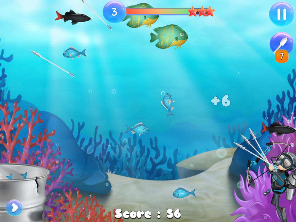 Fish Hunting is an amazing fishing game with simple user interface. It is simple yet interesting game in which user is provided with a bow and arrow, you need to hunt the fish to earn the score, you get different challenges, also you get addition character like shark etc with will add more fun to the play and you can change the power, total 6 powers which you can get level by level to hit more fish, challenge yourself to get more score. Kill your spare time with fun.