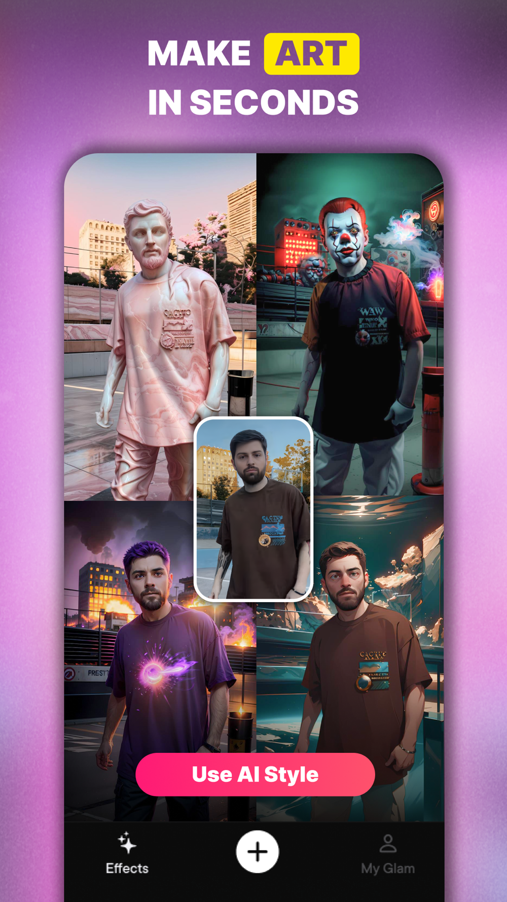 Glam is a perfect choice for those who don't want to follow the trends, but create them. Here we have dozens of hot AI Styles for your photos and videos — travel to other universes in just one tap! Wanna see yourself as a cute Anime character? Here we go! Wanna try something more bold? Check Bones or Neon Styles. Wanna experiment with your outfits? Try out Rock Star looks or Tweed Coats or authentic Tennis fits. Or change your clothes in your videos with first-ever Digital Clothes feature! Create better than anyone else with Glam app!