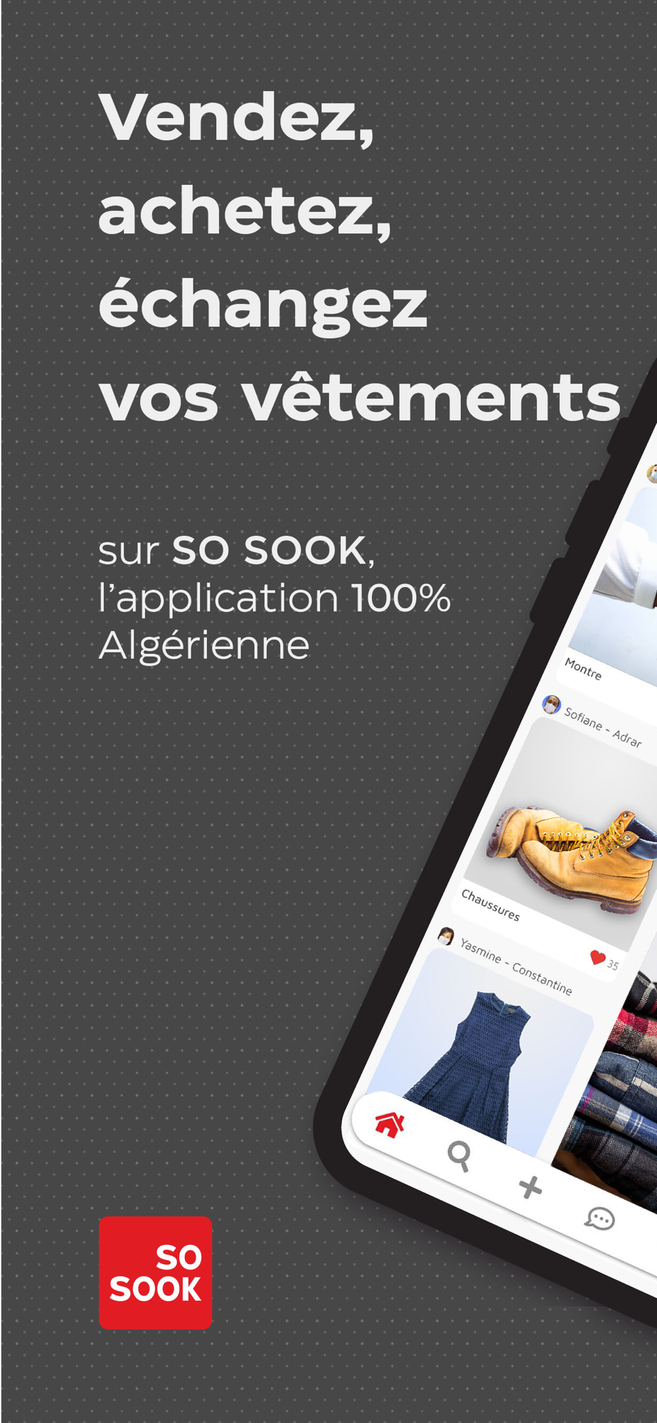 Avec SO SOOK, la vente et l’achat en ligne de vêtements devient accessible et facile, la meilleure app de vente et achat de vêtements neufs ou d’occasion en Algérie, et tout ça c’est gratuit.