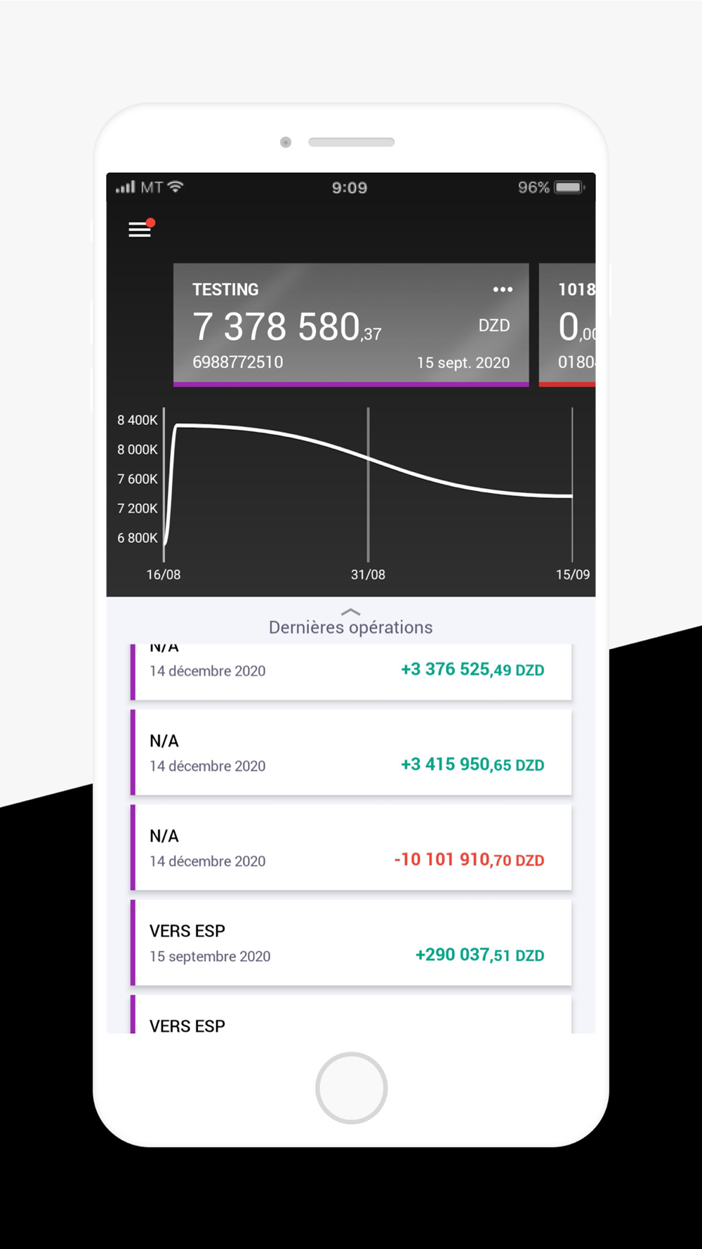 • Consulter toutes vos opérations en temps réel avec un historique allant jusqu’à 365jours ;