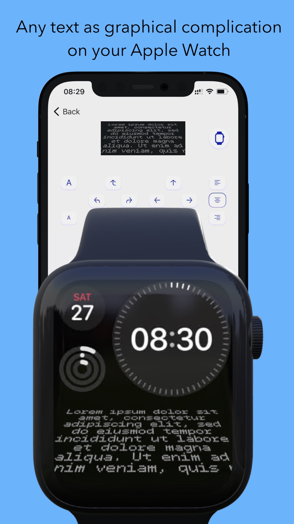 Personalize the face of your Apple Watch: you can rotate the words in 2D and 3D, choose the size and the font.