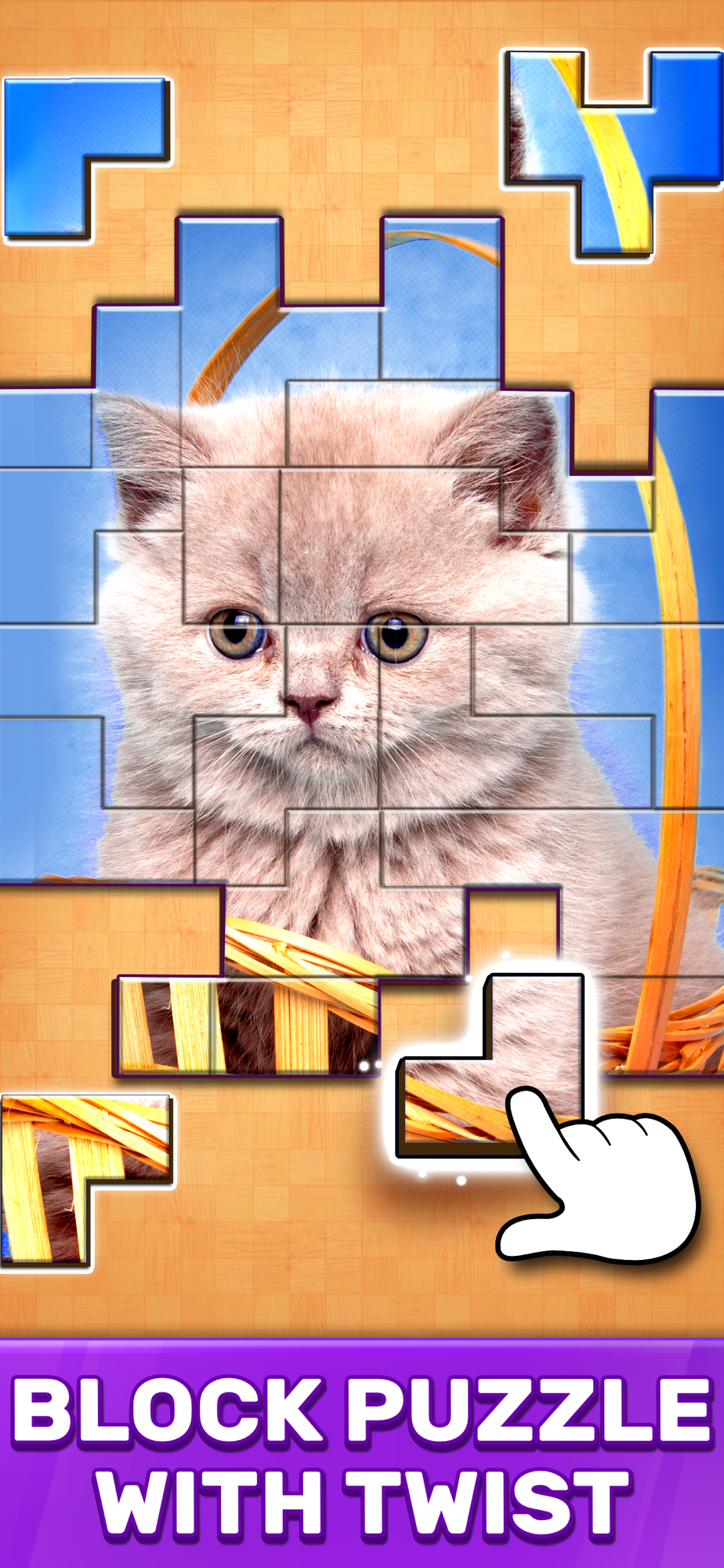 Jigsaw Puzzles Blocks is fresh, fun, and free take on the classic jigsaw puzzle formula. A huge collection of fun & challenging puzzles to train your brain! Includes HD image packs with cute animals, artwork, paintings, nature themes, and more! It's a bit like a cross between tangrams, Tetris, and jigsaws, but it's incredibly easy to play, and extremely addictive!