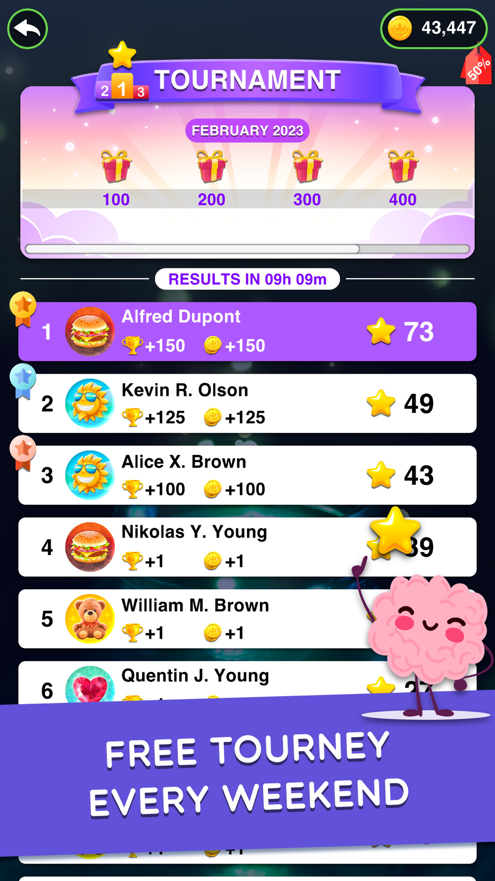 - FREE TOURNAMENTS. Find every word to score a maximum of stars every weekend. Earn your spot on the highest places of the rankings and get rewards.