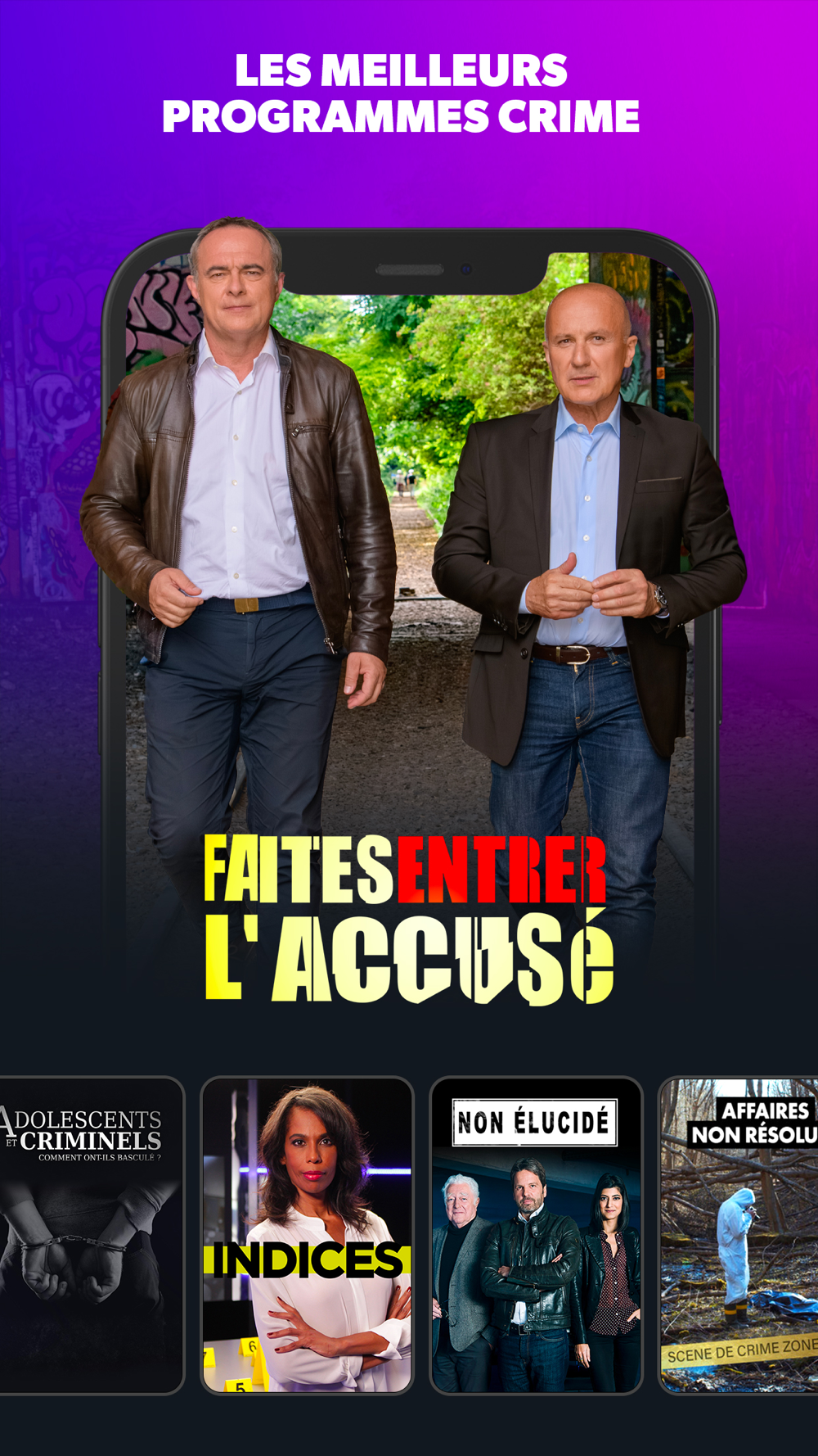 • REPLAY : Disponible juste après la diffusion ou en avant-première, retrouvez tous vos contenus préférés à la demande ! Naviguez et faites votre choix parmi un catalogue riche de milliers de vidéos disponibles entre 7 et 30 jours, facile à trouver dans la rubrique derniers replay. Chaque programme bénéficie également d'un enrichissement éditorial complet (bandes annonces, bonus vidéo, photos, fiches personnalités...).