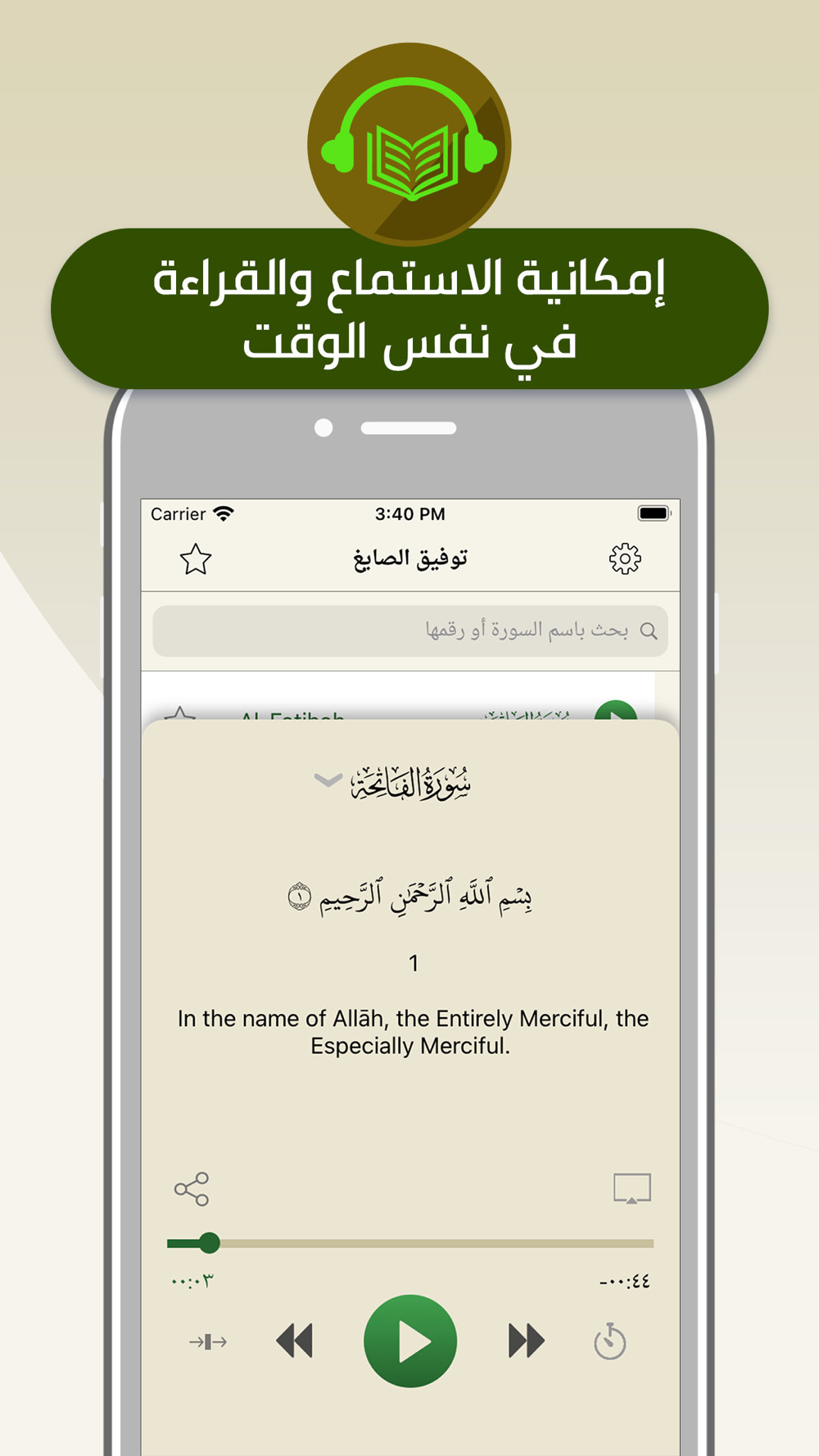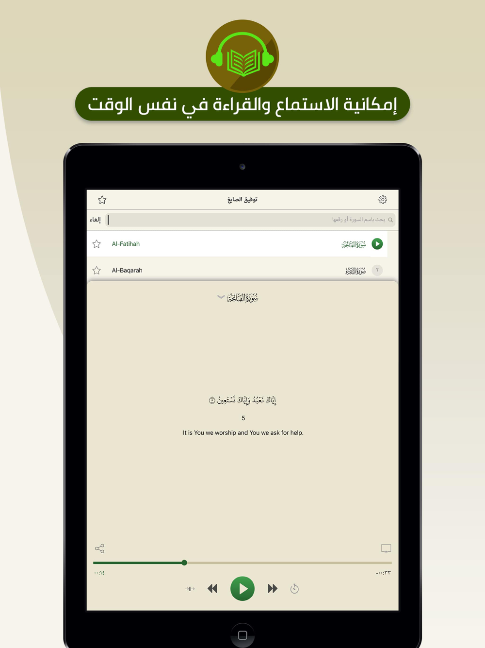 - إمكانية الاستماع وقراءة نص الآيات في نفس الوقت.