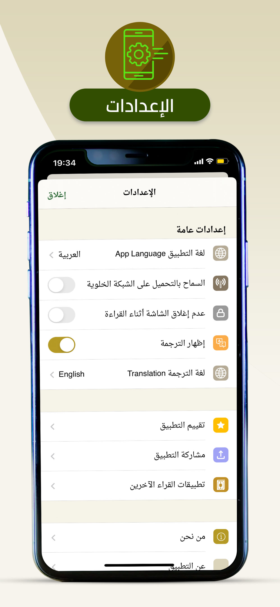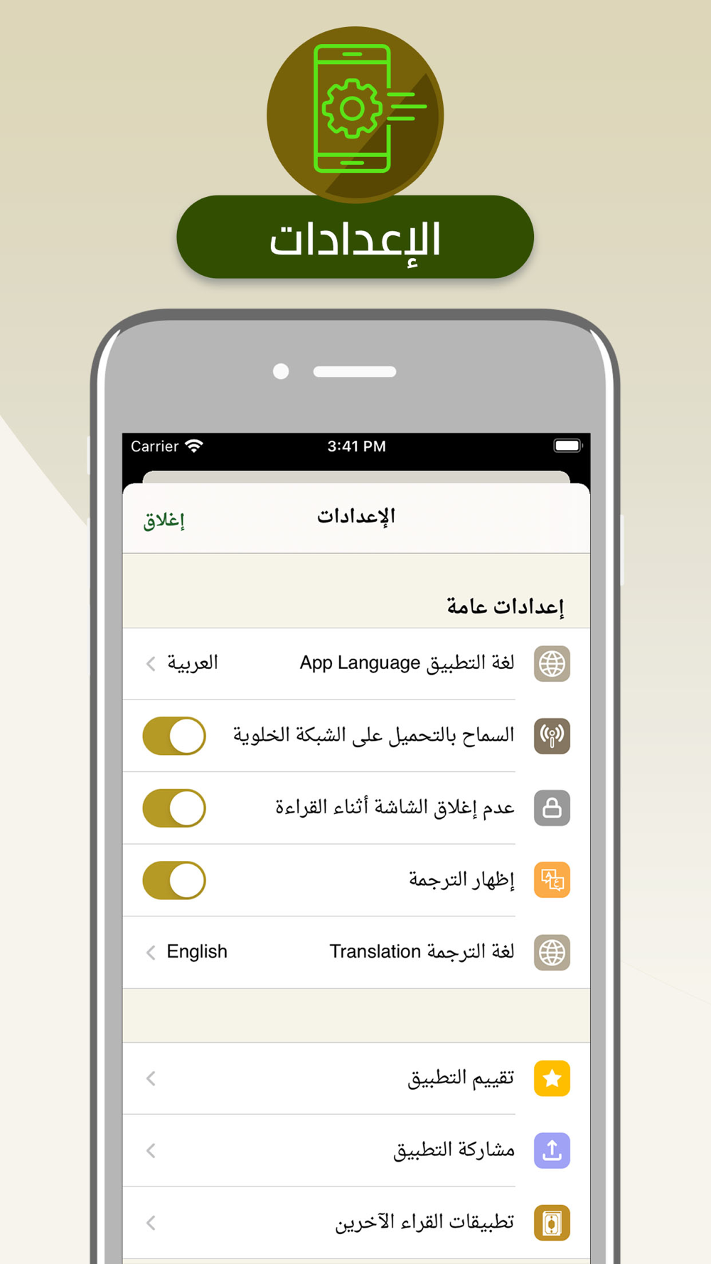 - إمكانية عرض ترجمات معاني القرآن الكريم.